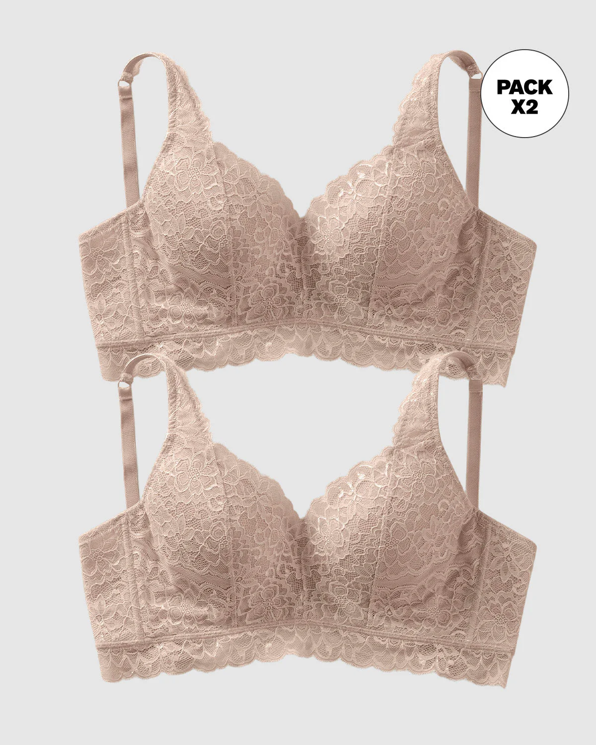 Paquete x 2 brasieres que te dan el soporte y el cubrimiento que necesitas. Son ideales para mujeres de busto mediano y grande. Están recubiertos en un encaje delicado, cuentan con suaves copas en espuma, arcos que soportan tu busto y varillas laterales para darte muy buen ajuste. Son tipo bustier, es decir, que tienen más cubrimiento en la base del busto. Su espalda ancha disimula el volumen de esta zona dándole una apariencia más plana. Pruébatelos y enamórate de inmediato ¿HabÃas pensado antes que una misma prenda podrÃa moldear tu cuerpo y a la vez hacerte lucir muy sexy? Llévalos en paquete x 2.