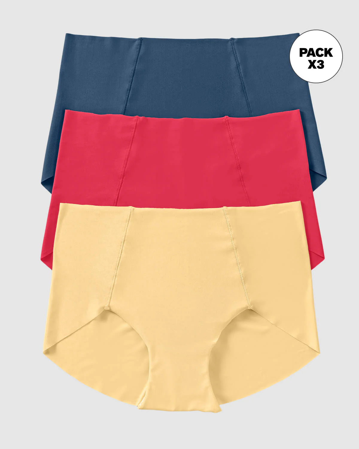 Paquete x 3 calzones clásicos de muy buen cubrimiento. Están elaborados en microfibra ultraliviana, con excelente ajuste al cuerpo y tacto suave con la piel. Las costuras son imperceptibles y no dejan marcas ni en tu piel ni en tu ropa. Su refuerzo inferior en algodón te dará más frescura y confort. Es ideal para usar con prendas ajustadas ¡querrás tenerlo en todos los colores!