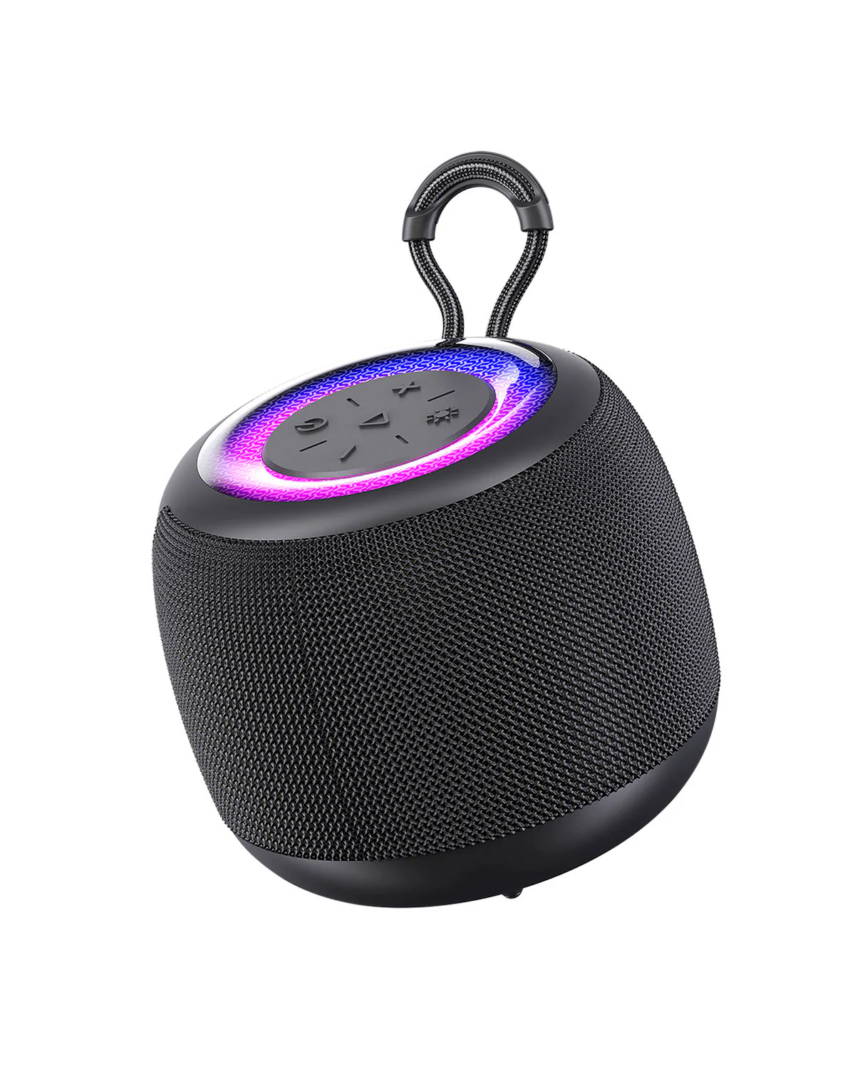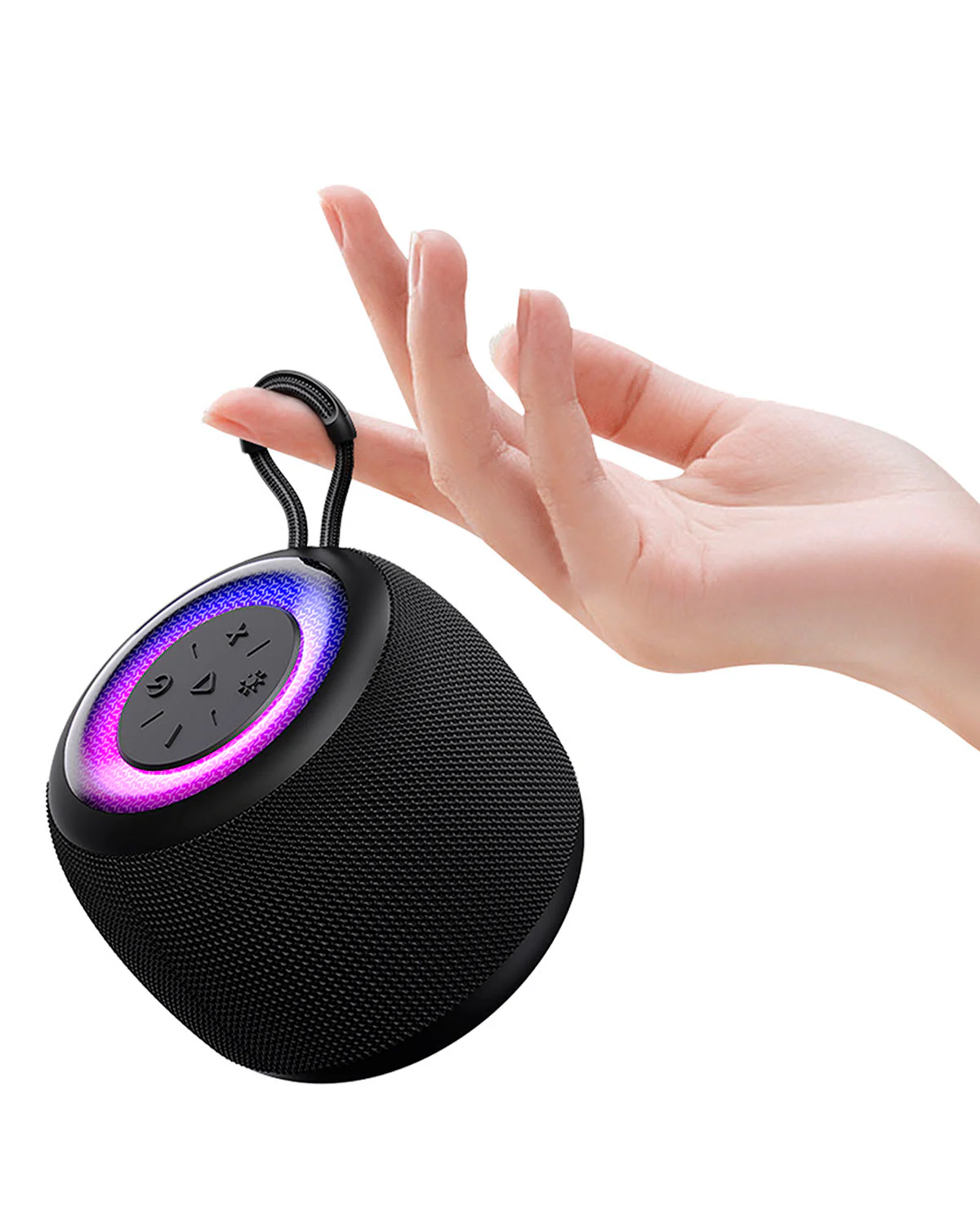 Mini Parlante Inalámbrico 5W BT5.3 Negro, combina estilo y funcionalidad para ofrecerte una experiencia auditiva excepcional. Con la última tecnología Bluetooth 5.3, garantiza una conexión estable y botones multifunción táctil sensible. Su diseño compacto y la correa incluida lo hacen perfecto para llevarlo contigo a todas partes. Además, puedes emparejar dos dispositivos para disfrutar de un sonido estéreo envolvente. Y para añadir un toque de ambiente, cuenta con luces de respiración coloridas que crean una atmósfera impresionante.