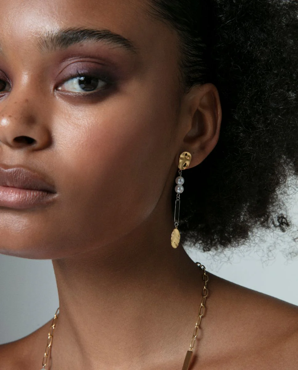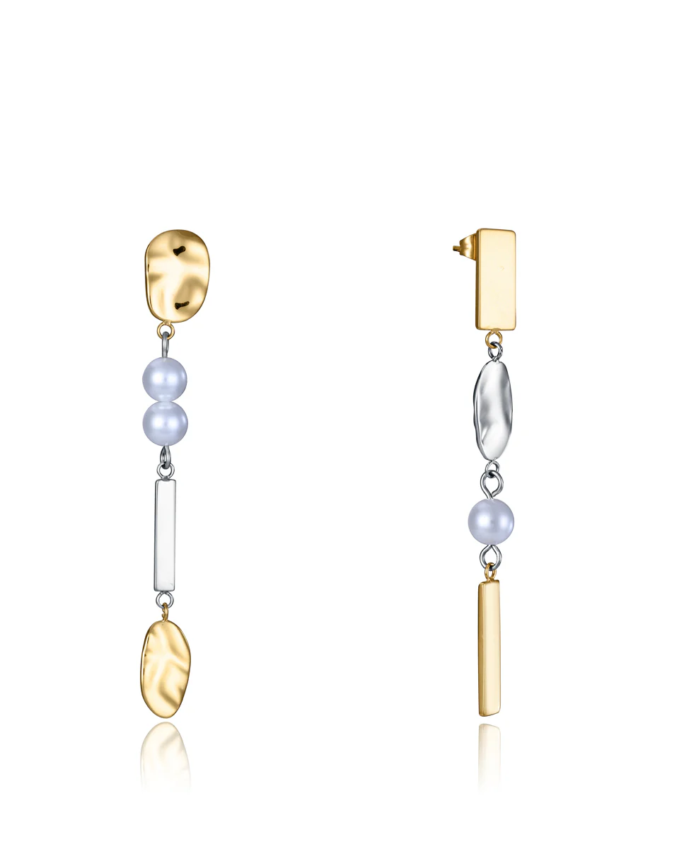 Pendientes de mujer en acero con acabado IP dorado, decorados con delicadas perlas sintéticas. Estos pendientes combinan la elegancia clásica de las perlas con el brillo moderno del dorado, creando una pieza sofisticada y versátil. Perfectos tanto para el día a día como para ocasiones especiales, añaden un toque de distinción a cualquier conjunto. Ideales para la mujer que busca una joya atemporal con un toque contemporáneo. Largo 6,3 cm.