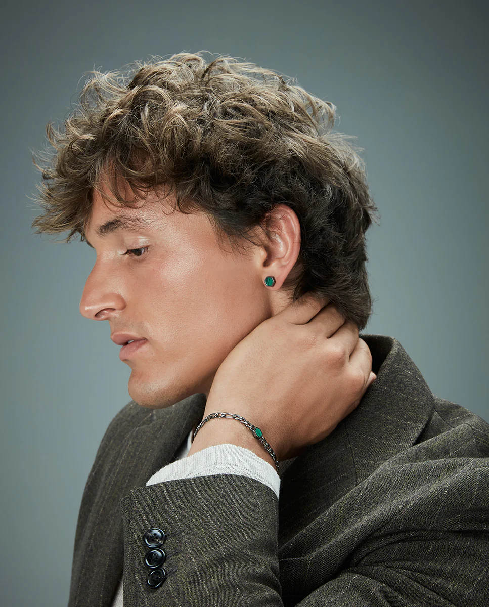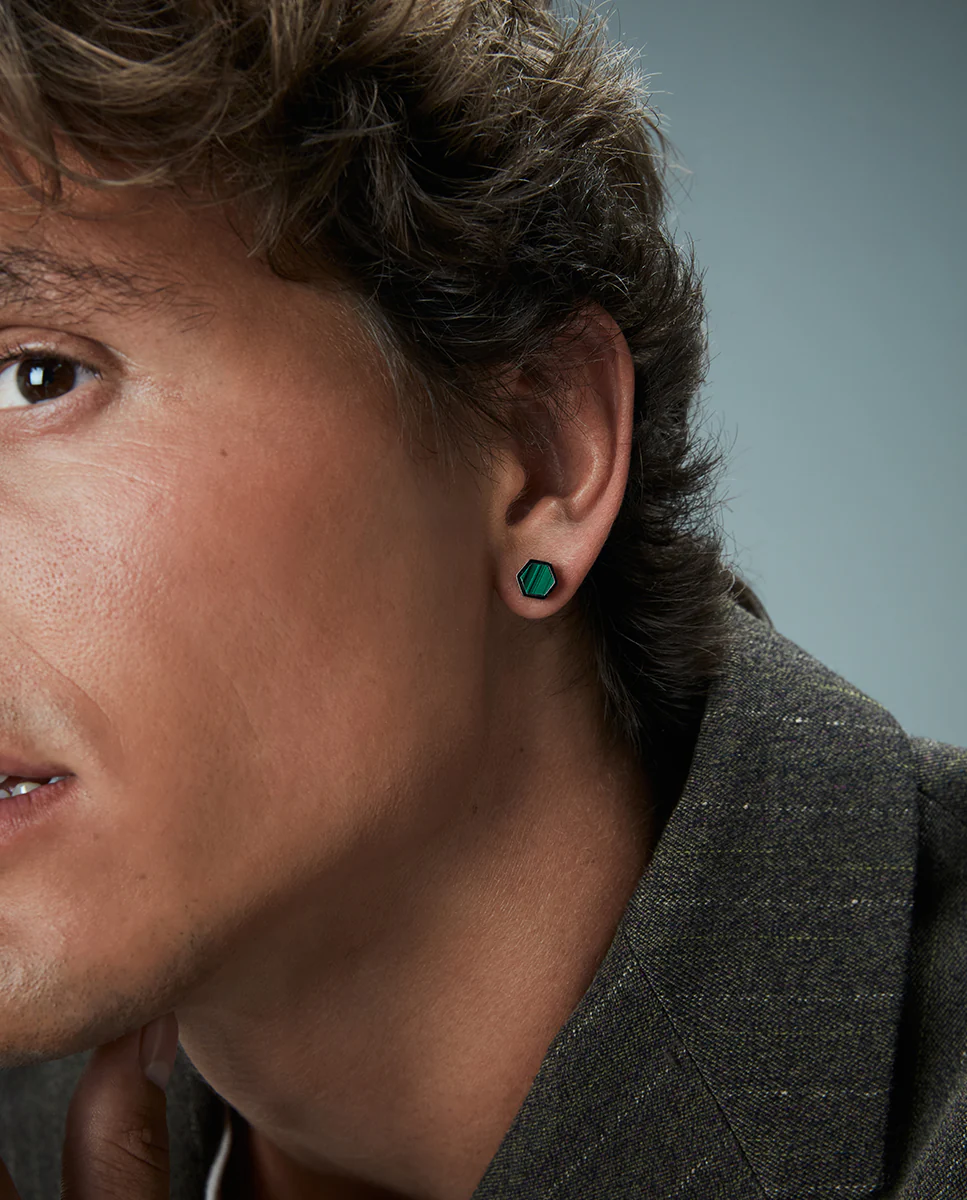 Unos pendientes que combinan modernidad y la belleza de la naturaleza en un diseño elegante. Fabricados en acero con acabado IP gris, estos pendientes presentan una piedra natural de malaquita, cuyo vibrante tono verde aporta un toque de color y distinción. Con un diámetro de 0,9 cm, son lo suficientemente discretos para el uso diario, pero lo suficientemente llamativos para destacar con sofisticación. Ideales para hombres que buscan un accesorio único y lleno de carácter, estos pendientes aportan un toque de frescura y elegancia a cualquier look.