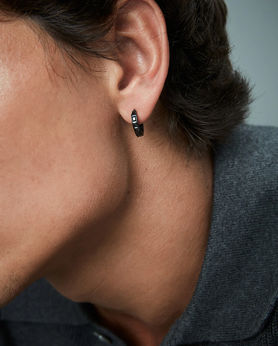 Unos pendientes que combinan audacia y elegancia en un diseño único. Fabricados en acero con acabado IP negro, presentan una criolla adornada con circonitas negras que aportan un brillo sofisticado y misterioso. Con un diámetro de 1,5 cm, estos pendientes son el accesorio perfecto para hombres que buscan destacar con estilo y distinción, sin perder la sutileza. Su diseño versátil los convierte en ideales para complementar tanto looks casuales como más formales, añadiendo un toque moderno y lleno de carácter.