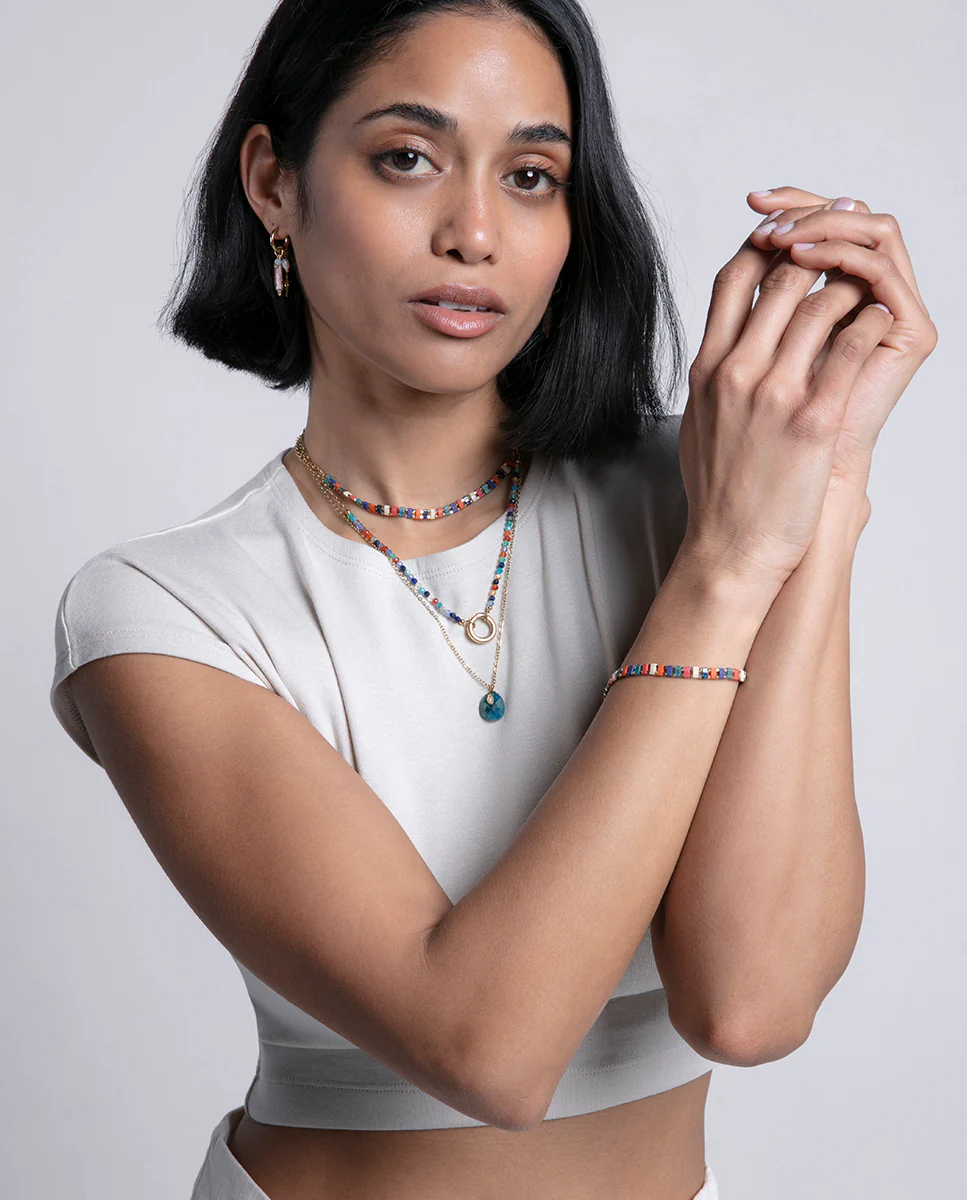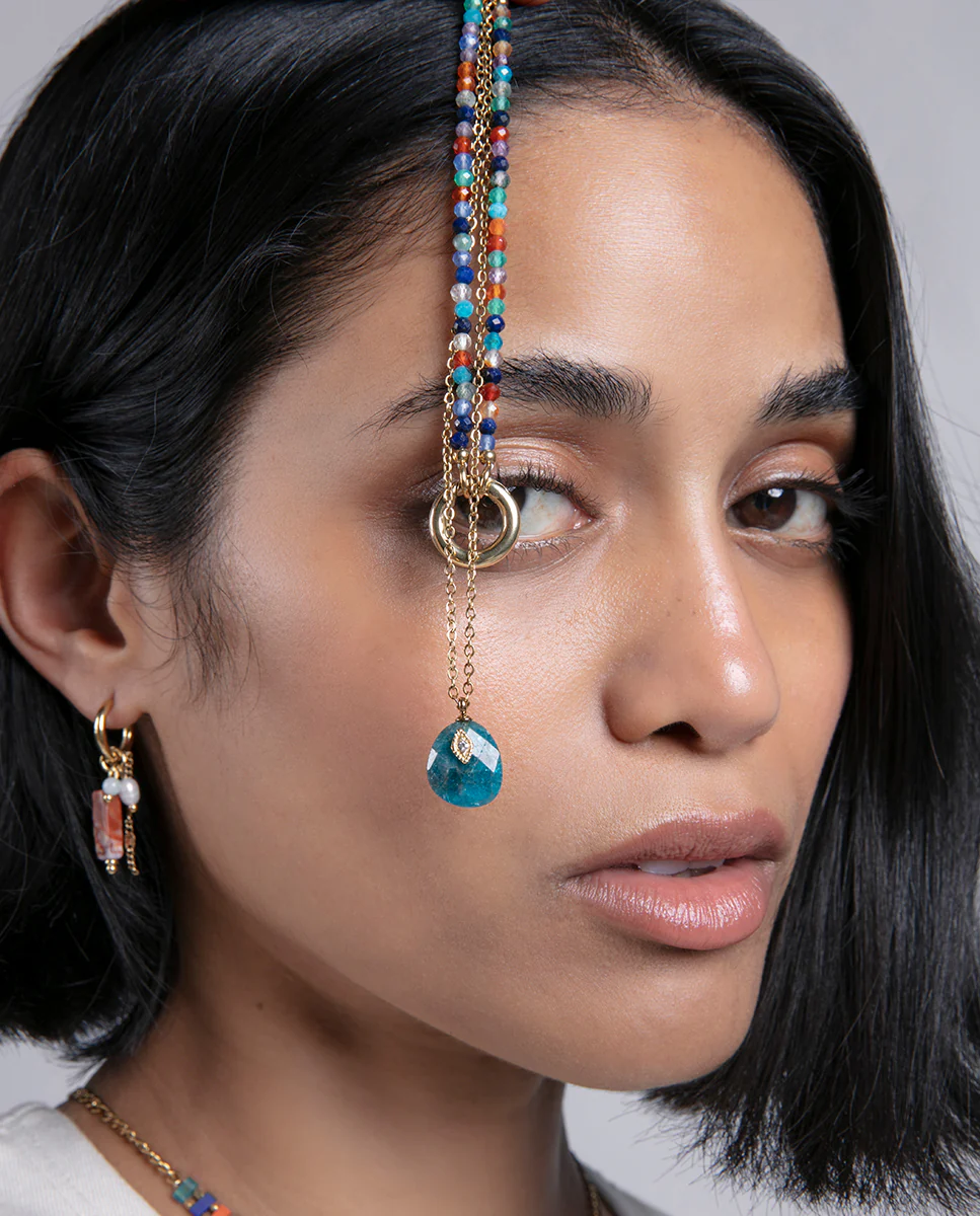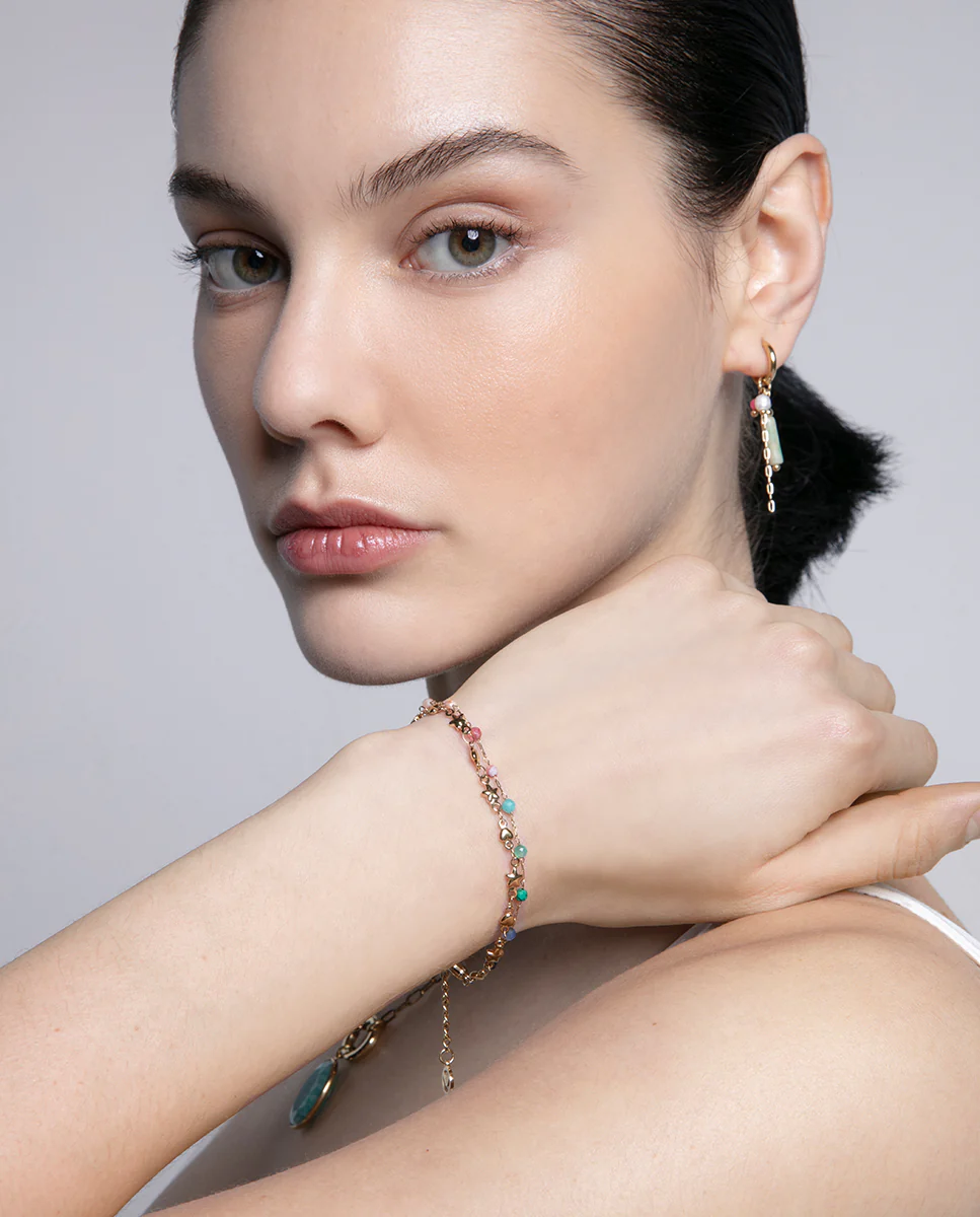 Estos pendientes de aro, confeccionados en acero dorado, destacan por su elegante diseño adornado con piedras naturales de colores y una perla cultivada. Una preciosa joya que captura por igual la luz y las miradas. Esta es la joya que buscabas para realzar tu look. Longitud: 4,2 cm.