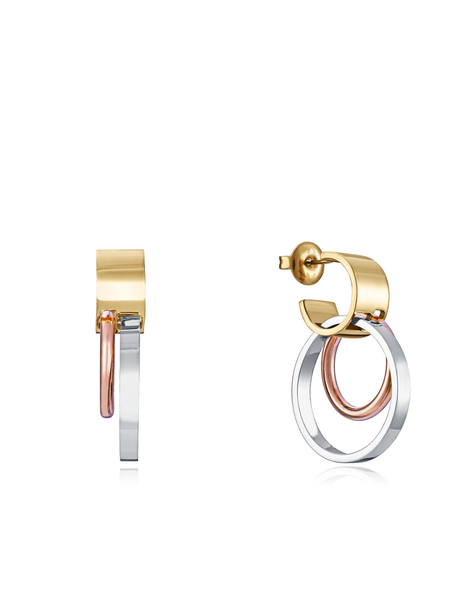 Dale un toque distinguido a tu look con estos pendientes de acero formados por dos aros colgantes de diferente color y tamaño. En total, 2,8 cm de belleza y sofisticación para completar tu mejor outfit. Solo al combinar los mejores materiales con los diseños más refinados se consiguen piezas como esta. Única de Viceroy. Longitud: 2,8 cm.