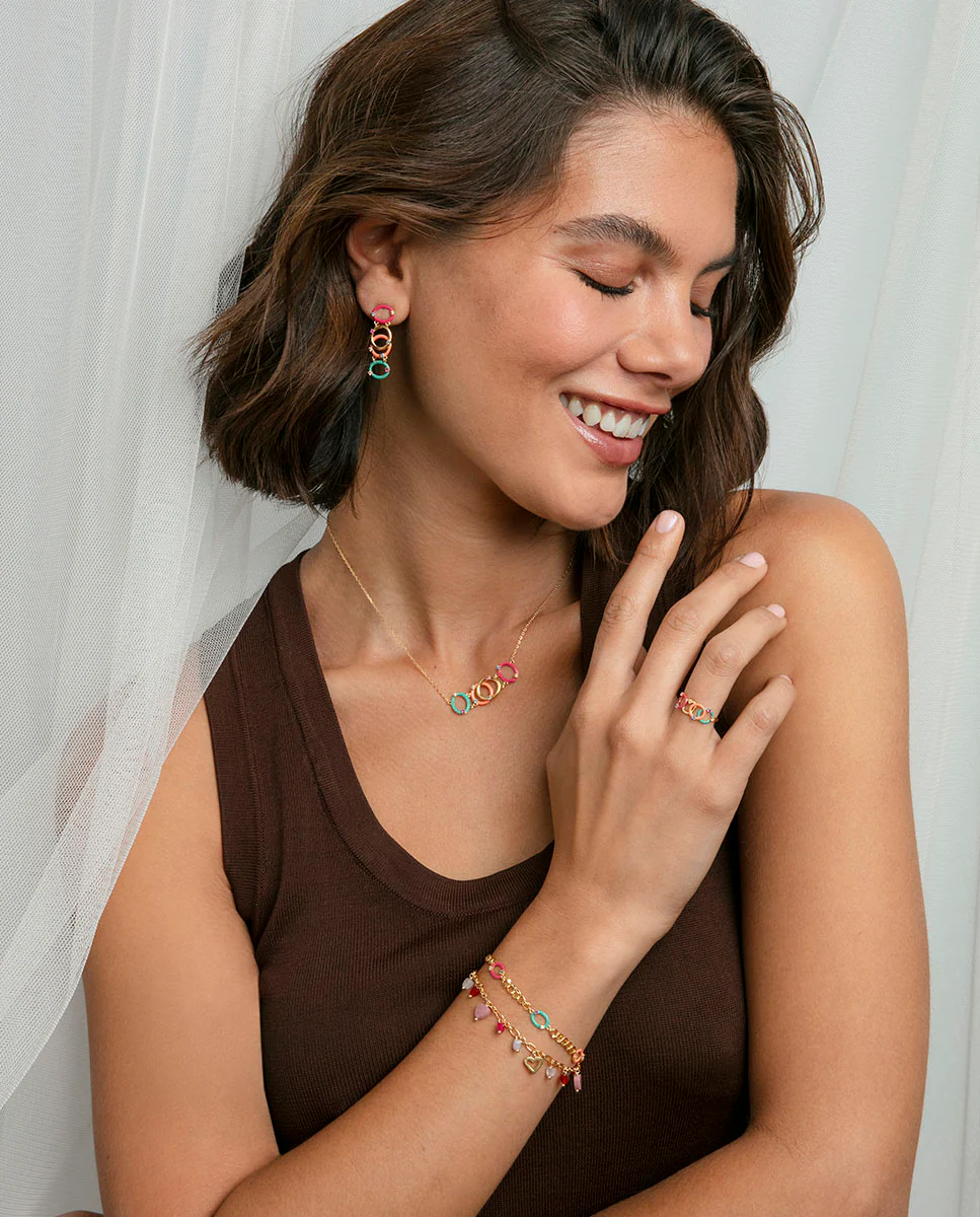 La combinación perfecta de color y elegancia se refleja en estos pendientes de plata de primera ley con baño de oro. Los círculos colgantes, adornados con esmaltes y circonitas de colores, crean una pieza vibrante y sofisticada que aporta un toque distintivo a cualquier look. Con un largo de 3,3 cm, son ideales para quienes buscan una joya que combine modernidad y frescura con un toque de elegancia. Una creación de Viceroy pensada para iluminar tu estilo.