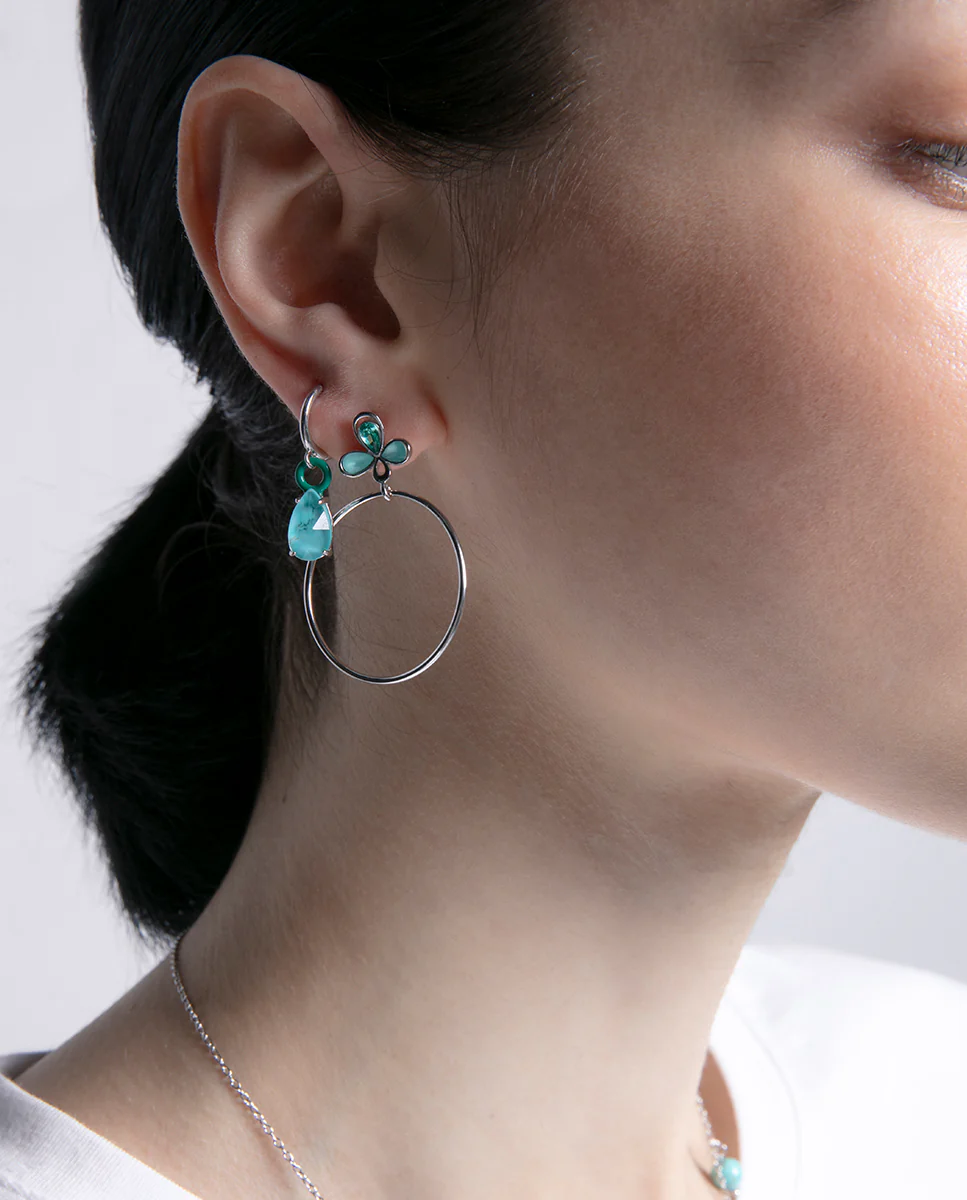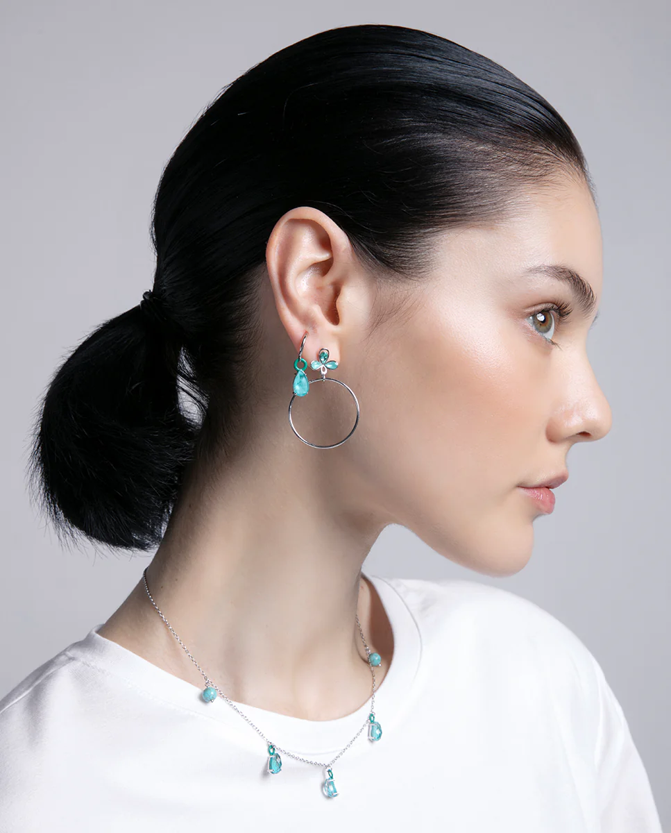 Unos pendientes que, con su delicada flor compuesta por circonitas verdes y un elegante aro colgante, aportan un toque de frescura natural, una joya con la que relucir con cada uno de tus pasos. El baño en rodio ofrece un brillo más atractivo y duradero, un seguro de éxito. Longitud: 4 cm.