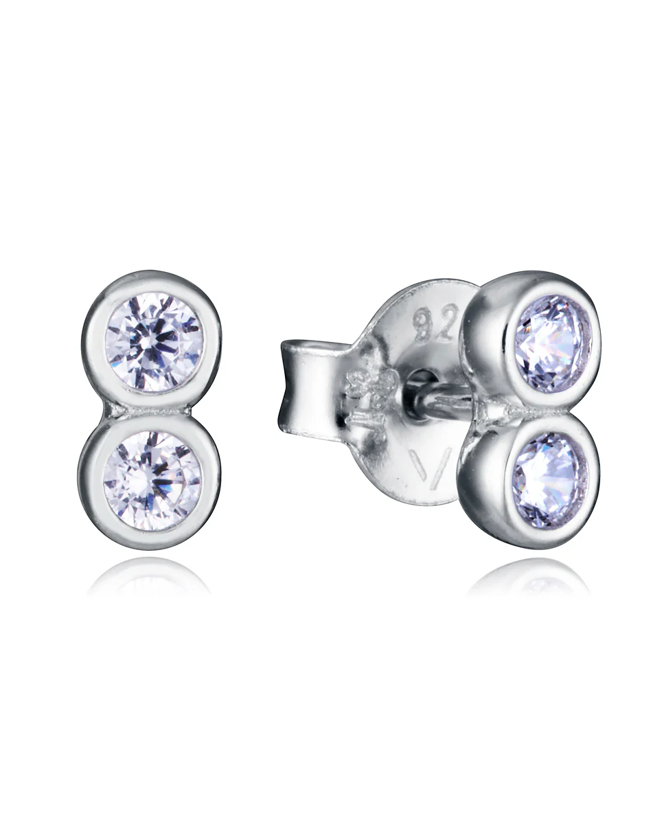 Delicados pendientes de plata de primera ley con baño de rodio destacan por su diseño elegante y minimalista. Cada pendiente está adornado con dos brillantes circonitas blancas que añaden un toque de sofisticación y luminosidad. Con un largo de 0,6 cm, son ideales para quienes prefieren un estilo discreto pero refinado. Perfectos para el uso diario o para complementar un look formal, estos pendientes ofrecen versatilidad y un brillo sutil que nunca pasa desapercibido. Largo 0,6 cm.