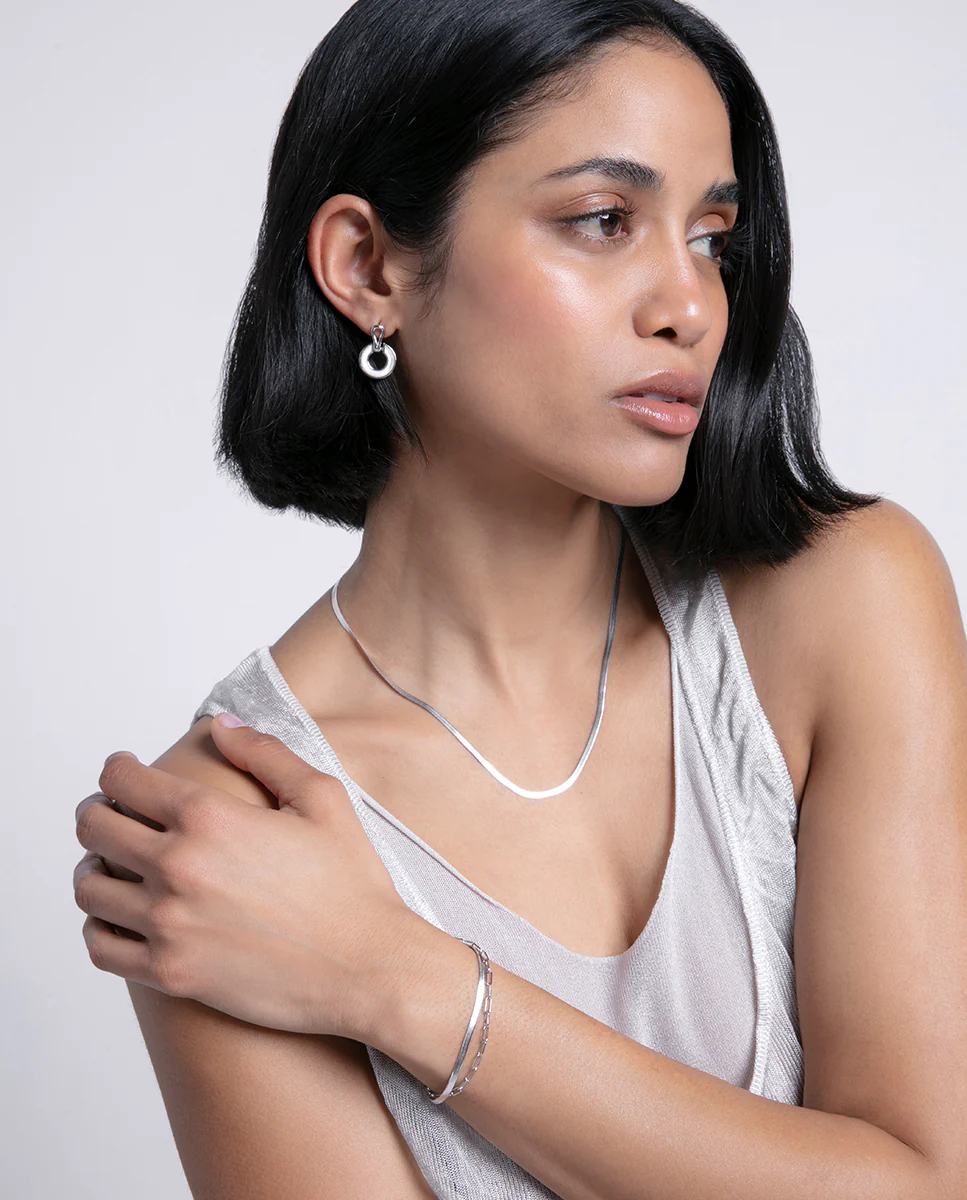 Estos delicados pendientes de plata de ley, realzados con un baño de rodio, presentan un colgante en forma de aro elaborado en madreperla, un material que evoca la esencia del mar y la naturaleza. Esta joya, única de Viceroy, es el broche perfecto para destacar en tus momentos. Longitud: 2 cm.
