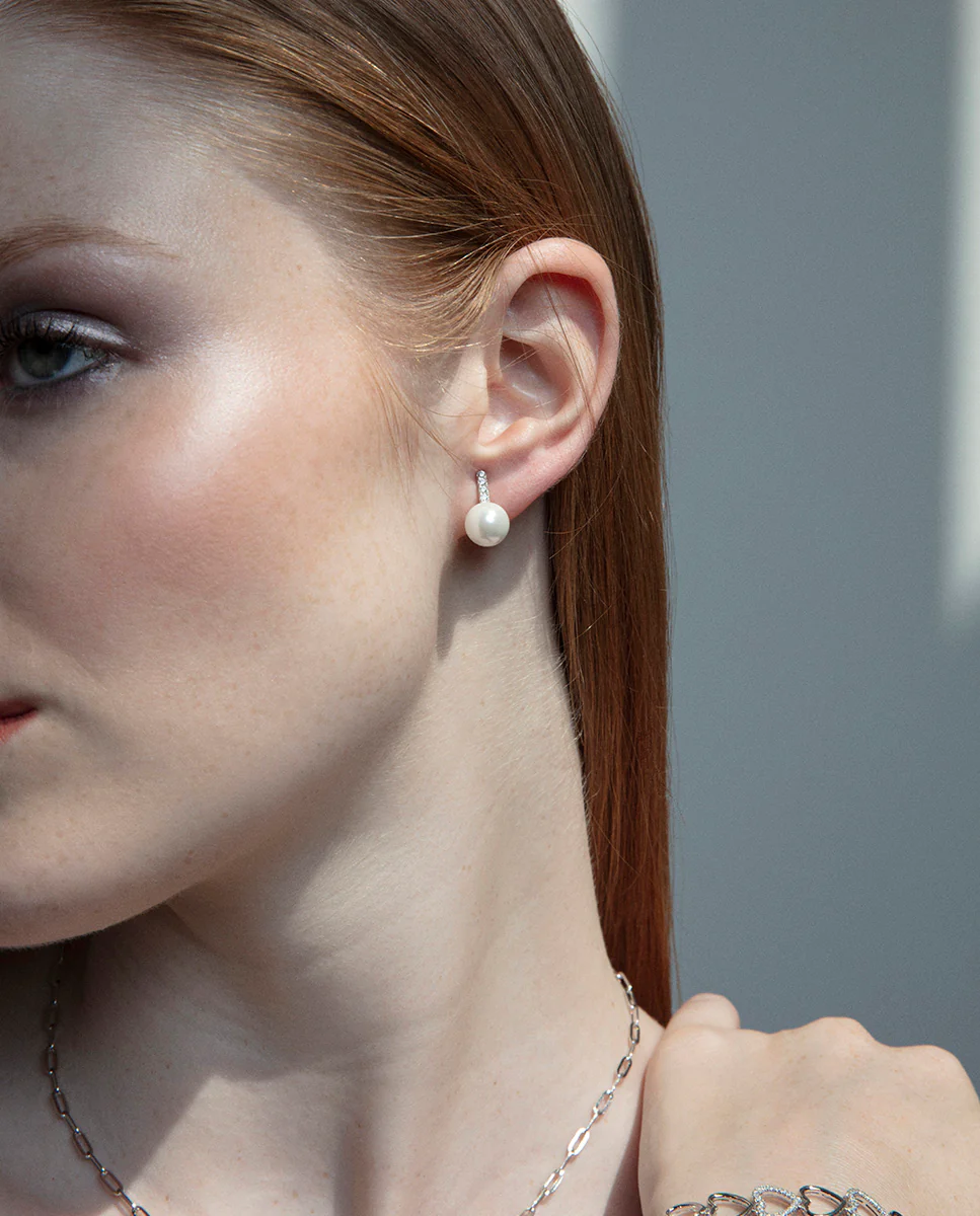 Pendientes de plata de primera ley con baño de rodio combinan sofisticación y estilo clásico con un toque moderno. Adornados con una delicada perla sintética y brillantes circonitas blancas, estos pendientes añaden un destello de elegancia a cualquier conjunto. Con un largo de 16 cm, son perfectos para ocasiones especiales, creando una presencia llamativa y refinada. Ideales para la mujer que busca un accesorio distinguido y lujoso, estos pendientes aportan una combinación de brillo y delicadeza que resalta en cualquier evento o celebración. Largo 16 cm.
