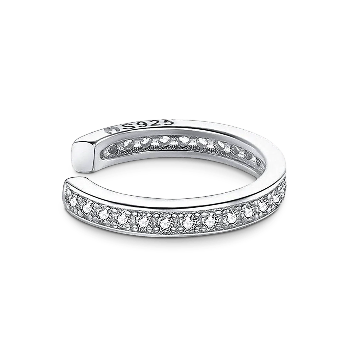 Pendiente estilo Ear Cuff, con diseño de semi aro, decorados con brillantes blancos, en plata de primera ley (S925).
