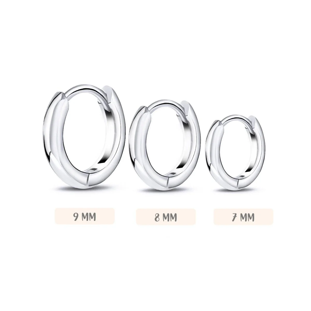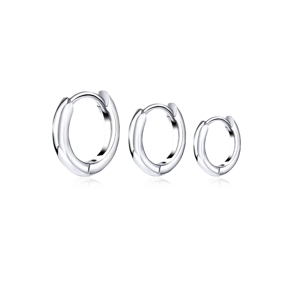 Pendientes de aritos clásicos de textura lisa, para combinar en tres tamaños diferentes, en plata de primera ley (S925).