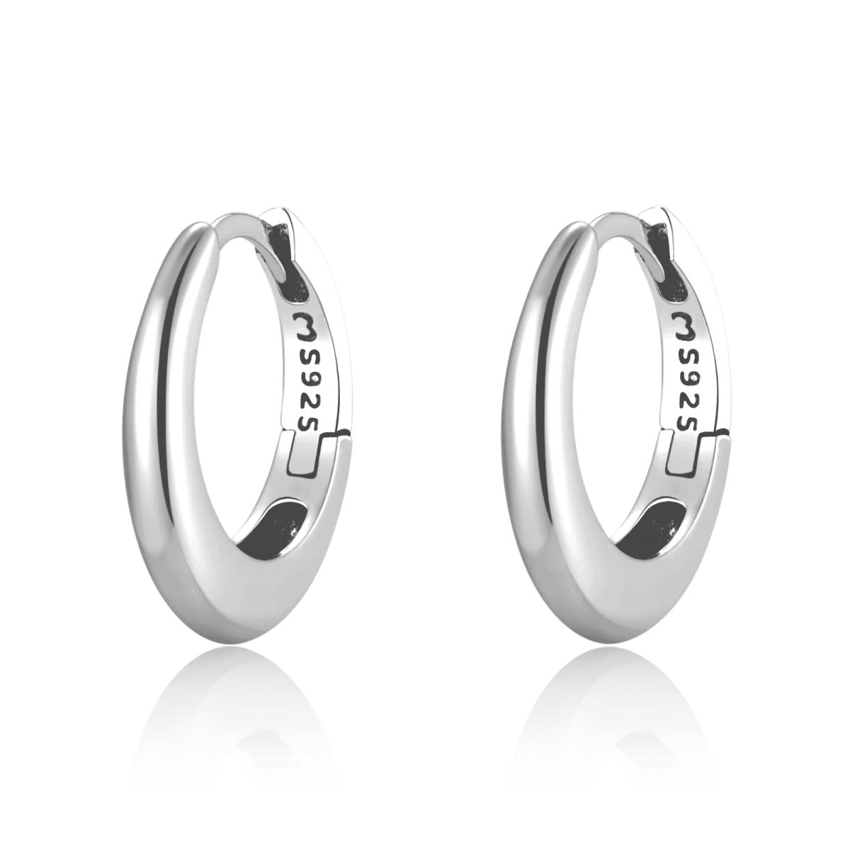 Elegantes pendientes de aros de textura lisa, en plata de primera ley (S925).