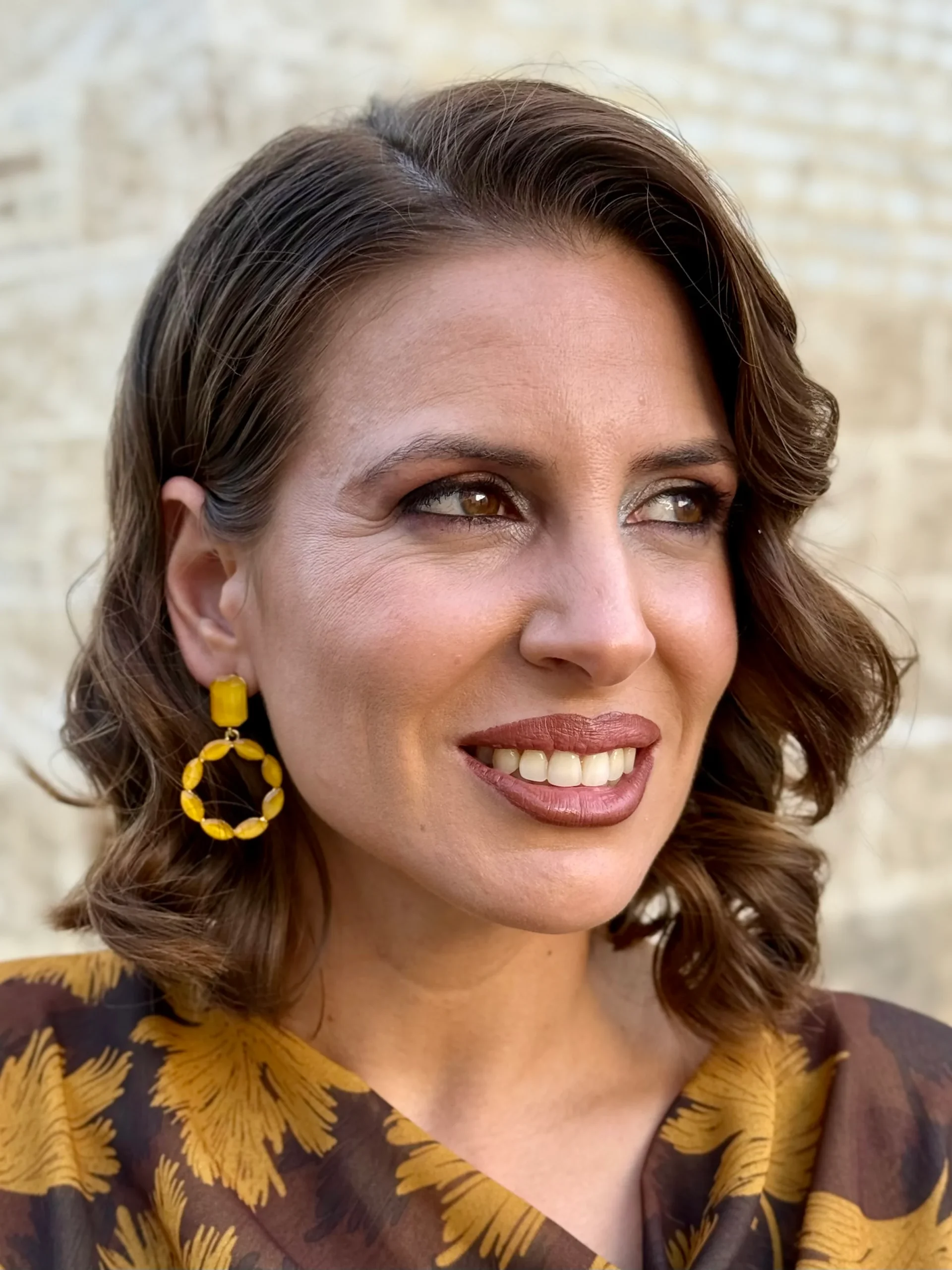Un pendiente que es pura alegr铆a: dise帽o floral en tono camel con detalles dorados que aportan luz y movimiento. Su forma alargada con cadenas doradas estiliza el rostro y a帽ade un toque chic y femenino a cualquier look.