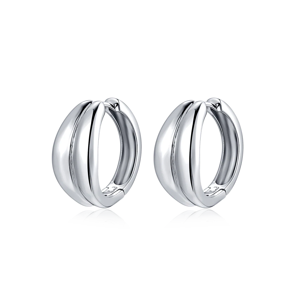 Pendientes con diseño dual, compuestos por doble aros en la parte frontal y una superficie lisa, pulida y sin divisiones en la parte posterior, elaborados en plata esterlina.