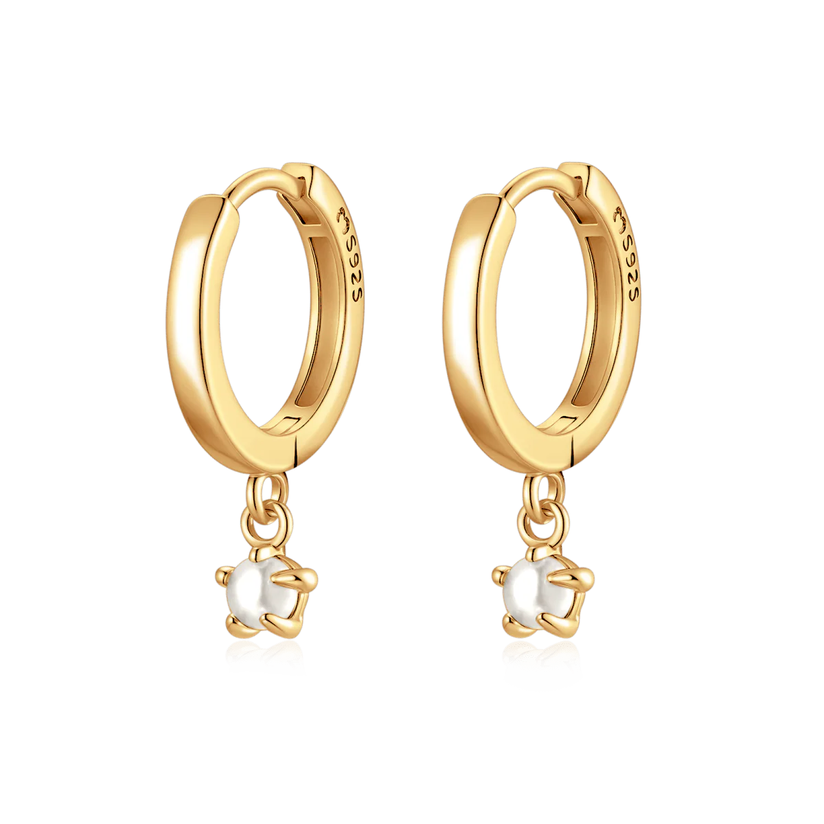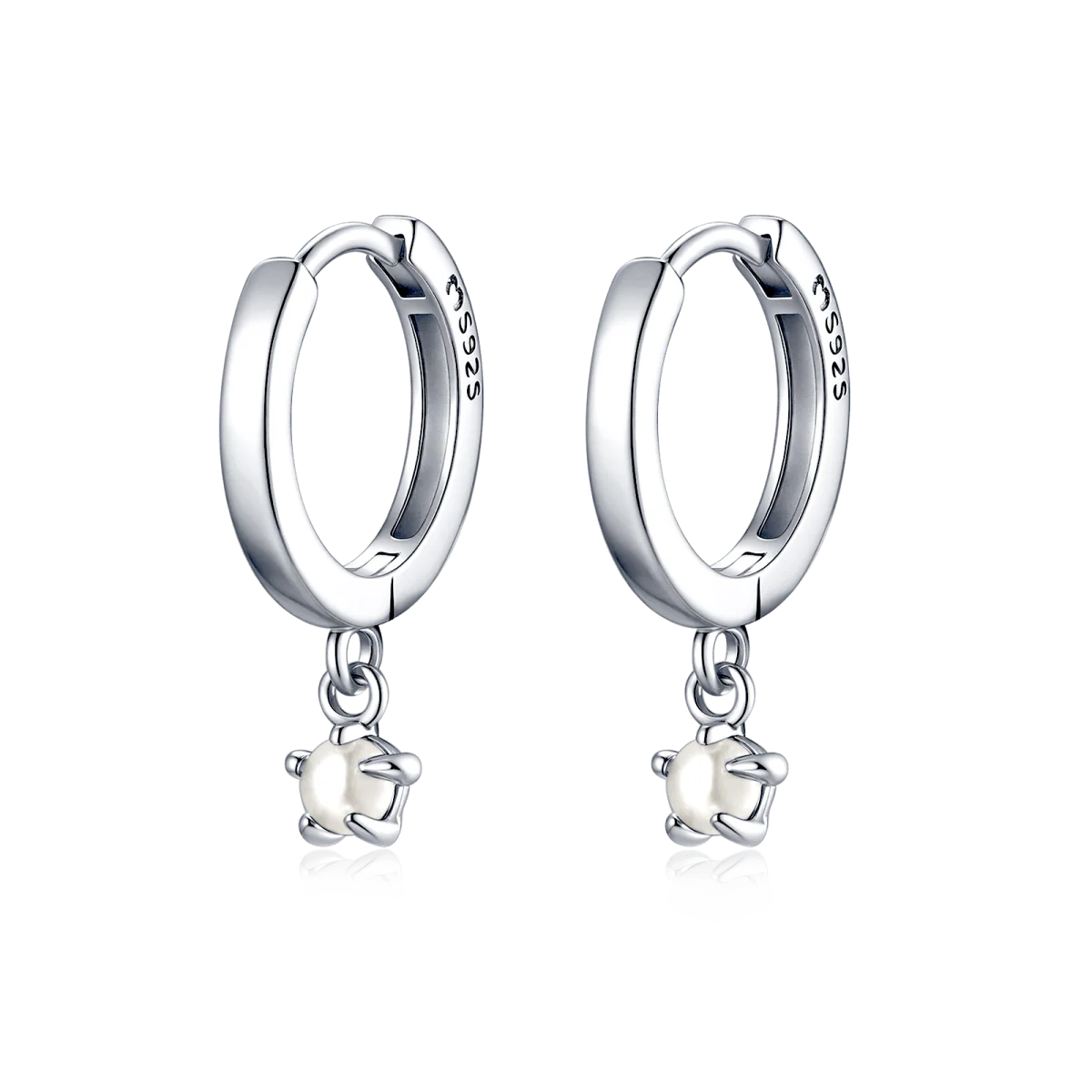 Pendientes de aros con colgante de perlitas satinadas, en plata de primera ley (S925).