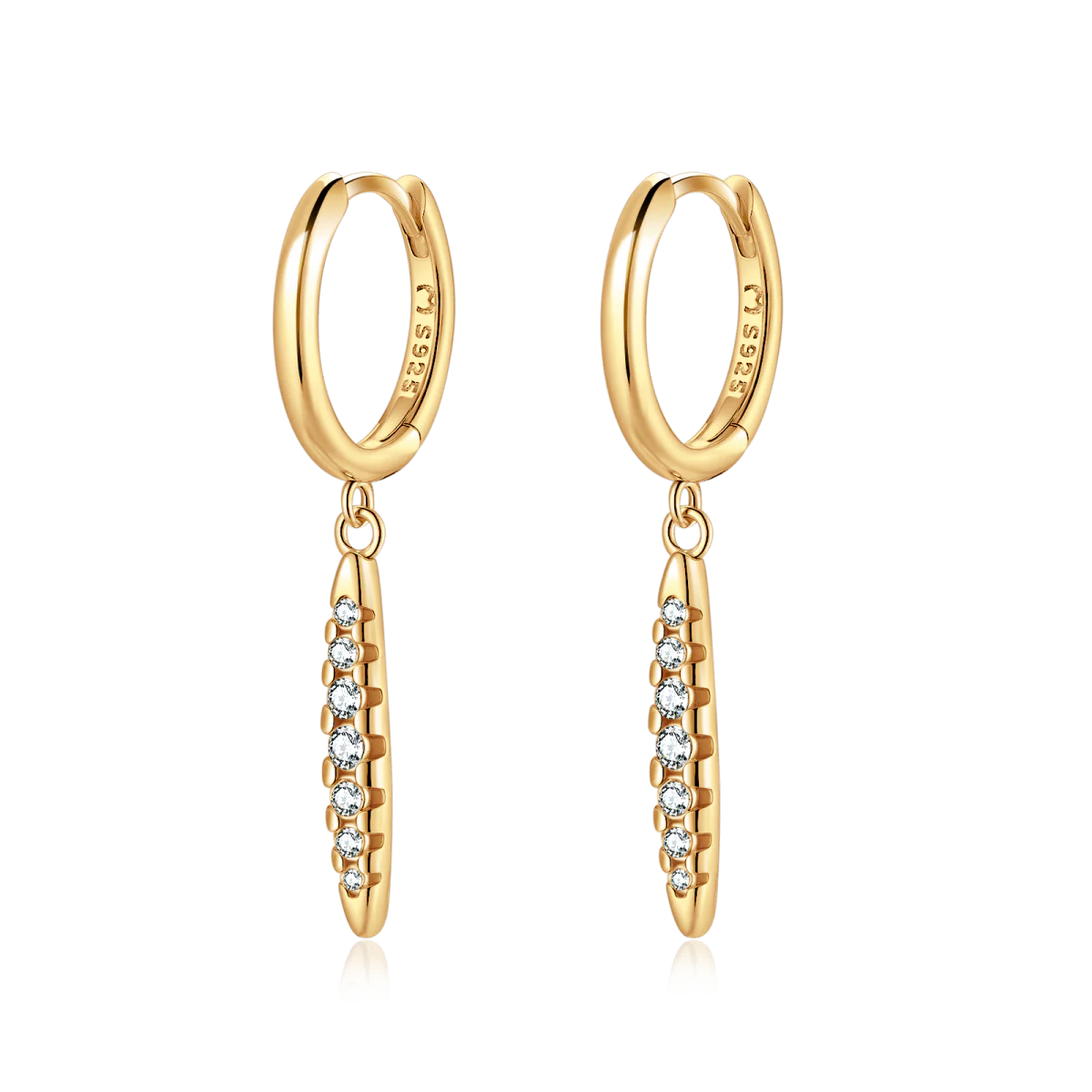 Pendientes de aros con colgante vertical alargado, decorado con circonitas brillantes, en plata de primera ley (S925).