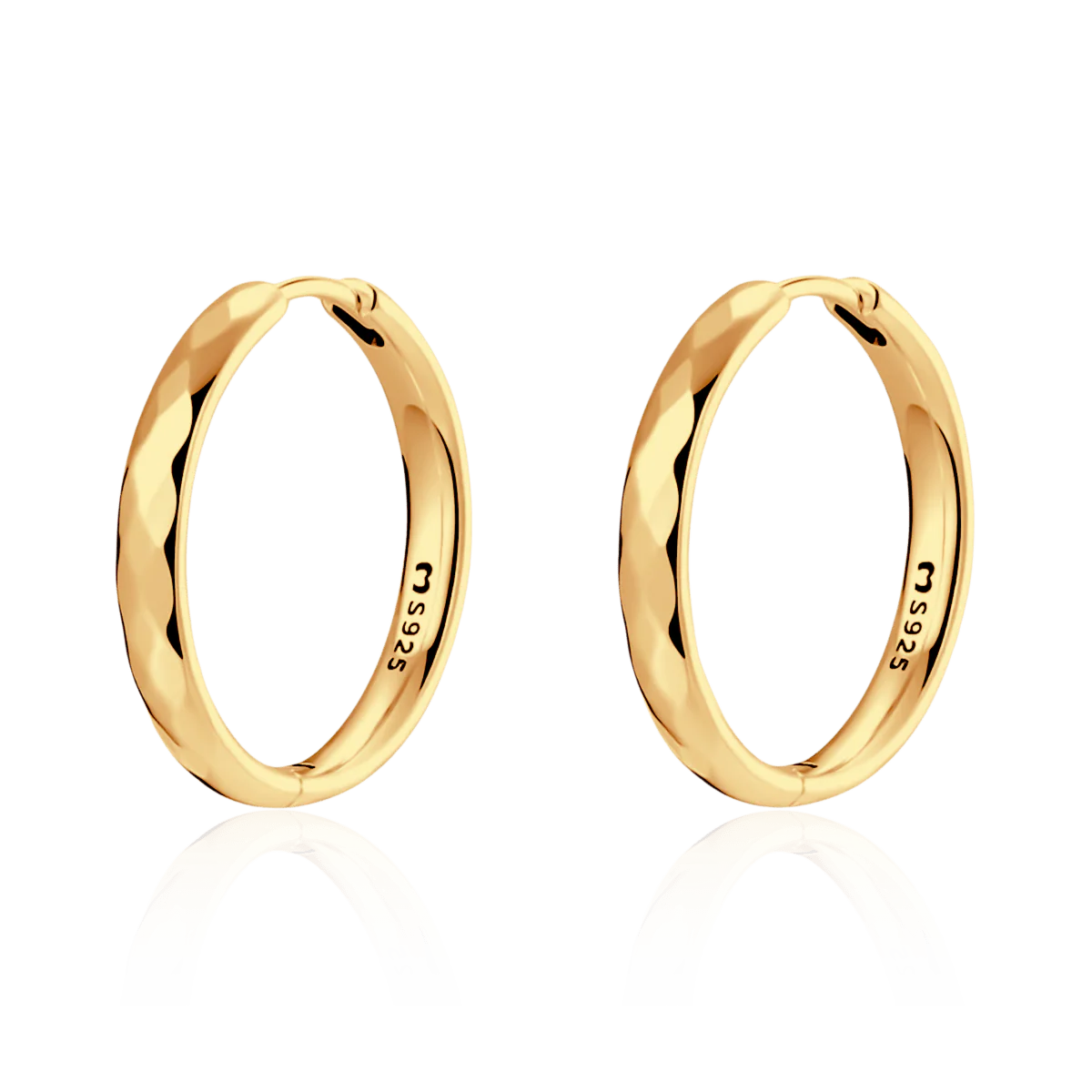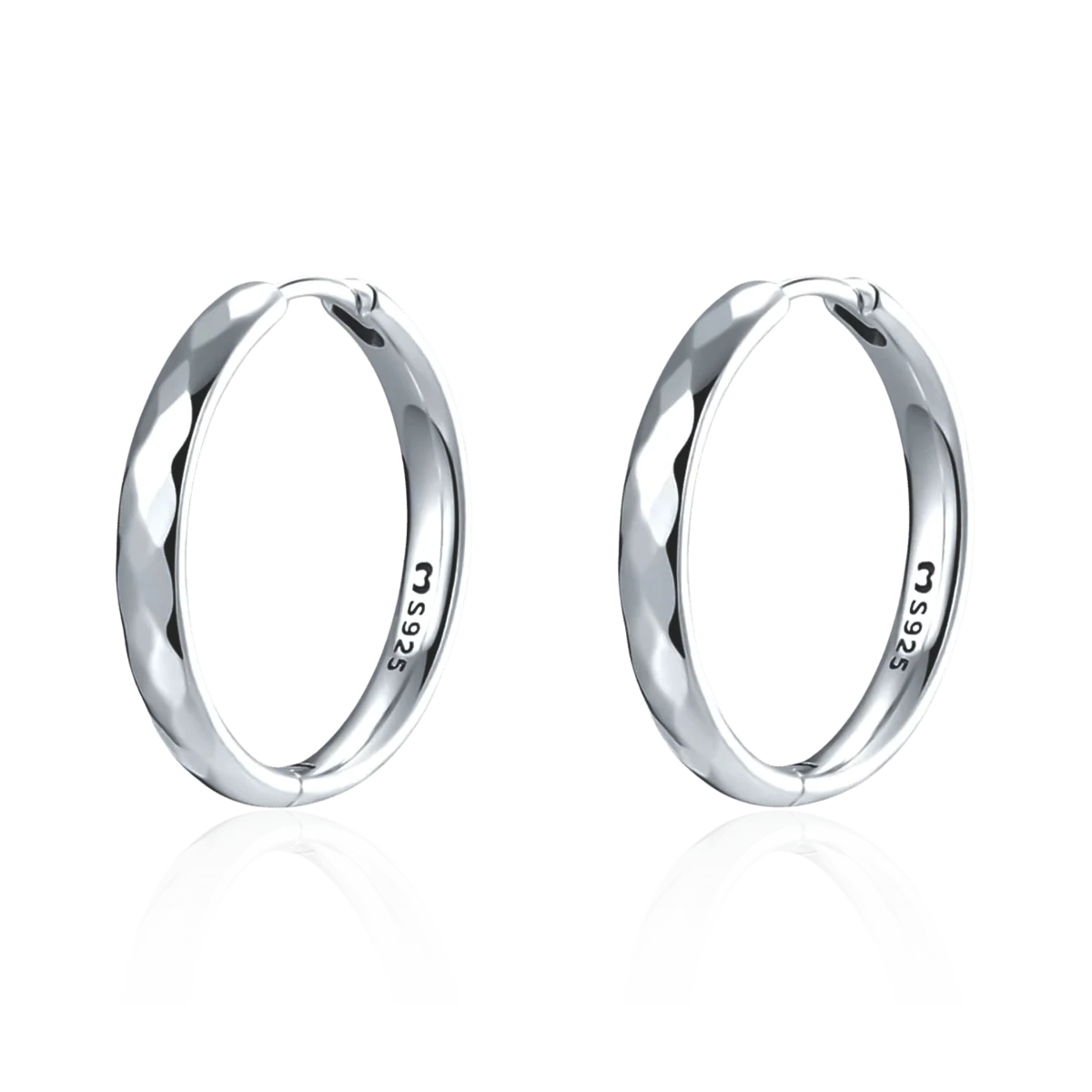 Pendientes de aros con figuras de diamantes de textura y forma tridimensional, en plata de primera ley (S925).