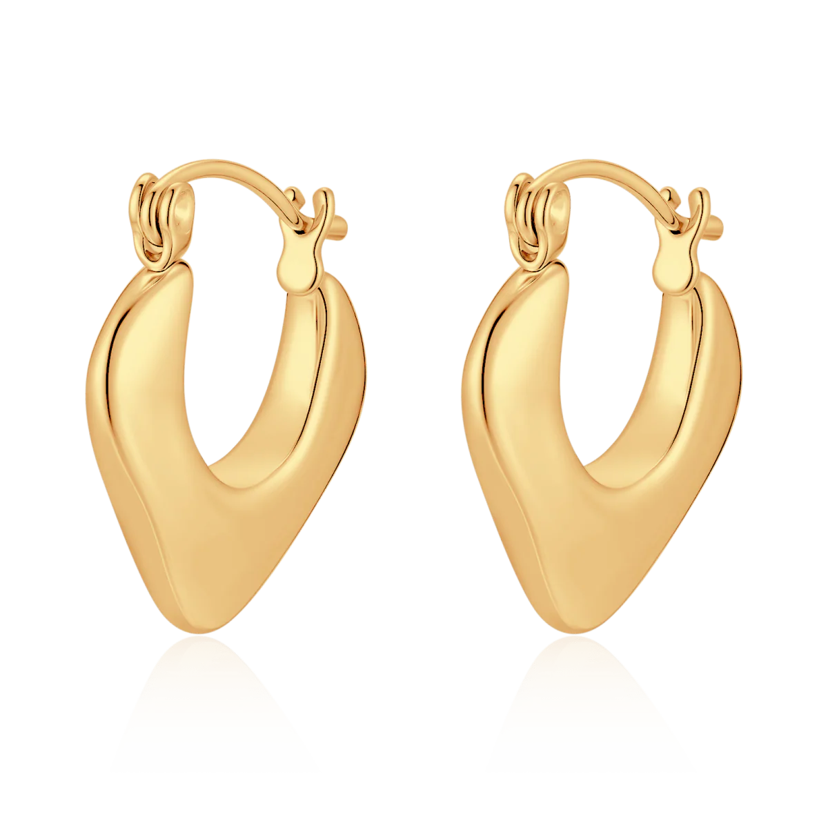 Pendientes de aros robustos y sólidos con una silueta triangular invertida en forma irregular, textura lisa, diseño moderno y minimalista, elaborados en acero inoxidable de la mejor calidad (316L).