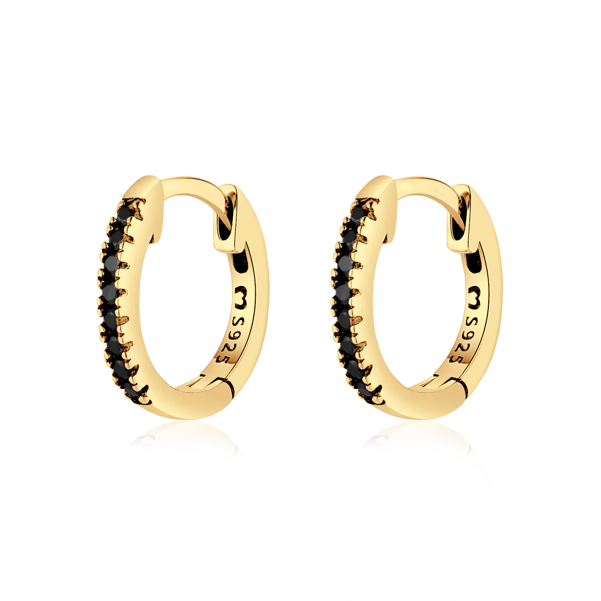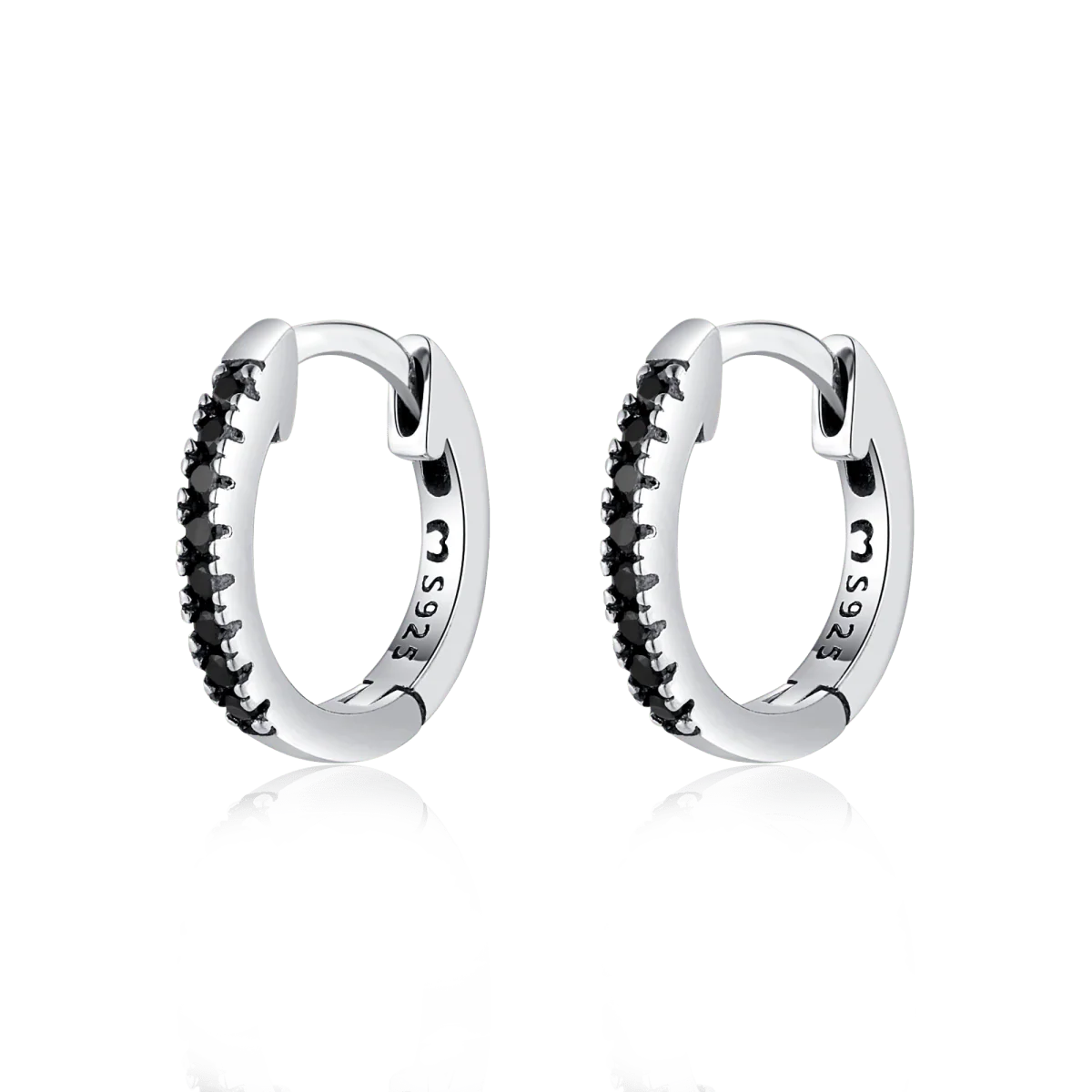 Pendientes en forma de aro decorados con circonitas en color negro, en plata de primera ley (S925).