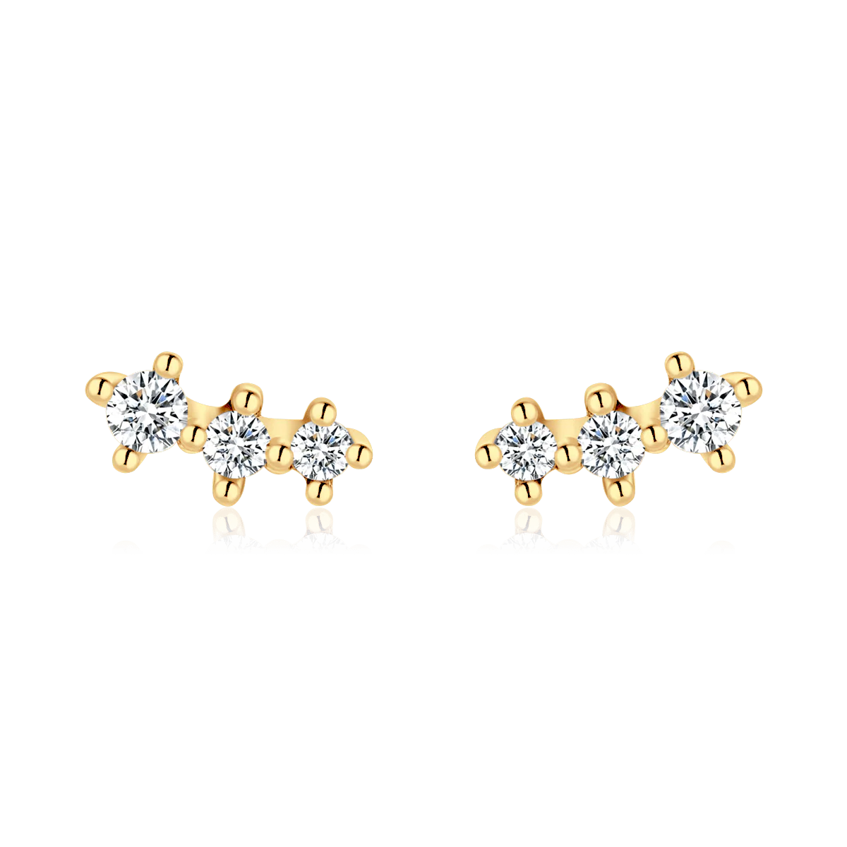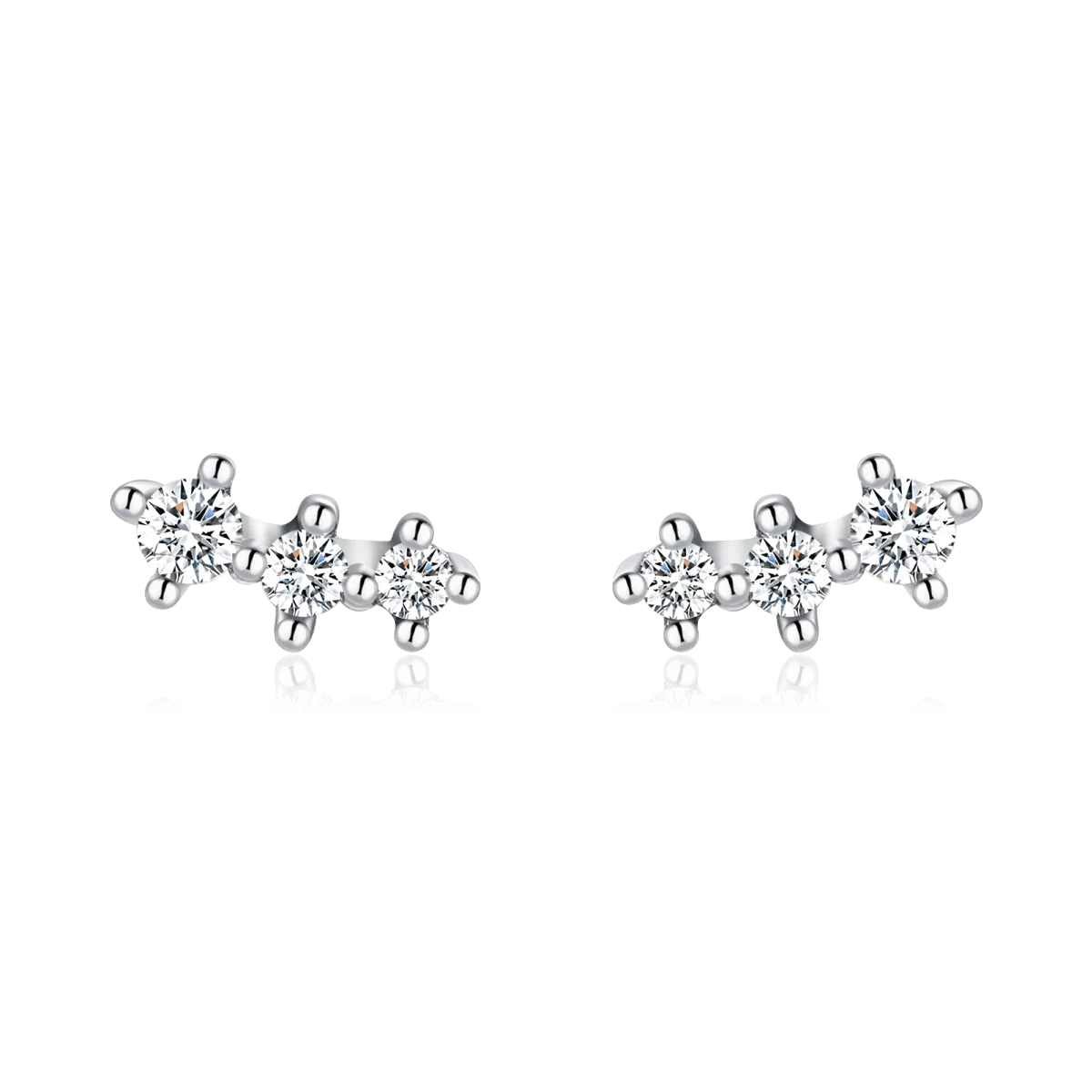 Pendientes formados por tres delicadas circonitas, en plata de primera ley (S925).