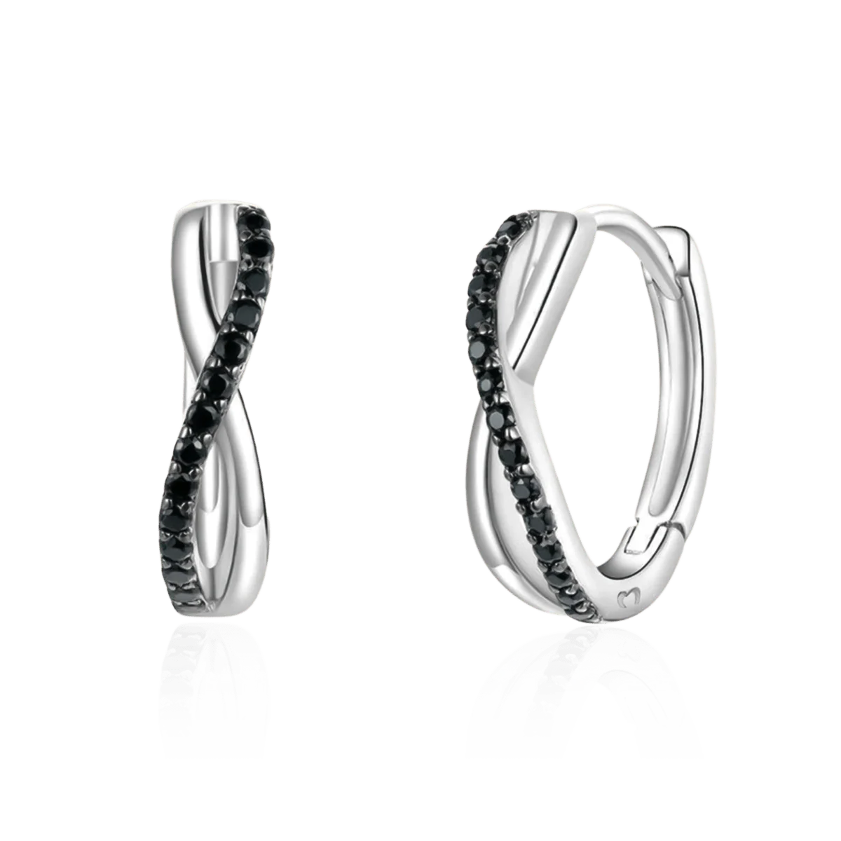 Pendientes de aros, decorados con una lÃnea de circonitas negras en forma de curva, en plata de primera ley (S925).