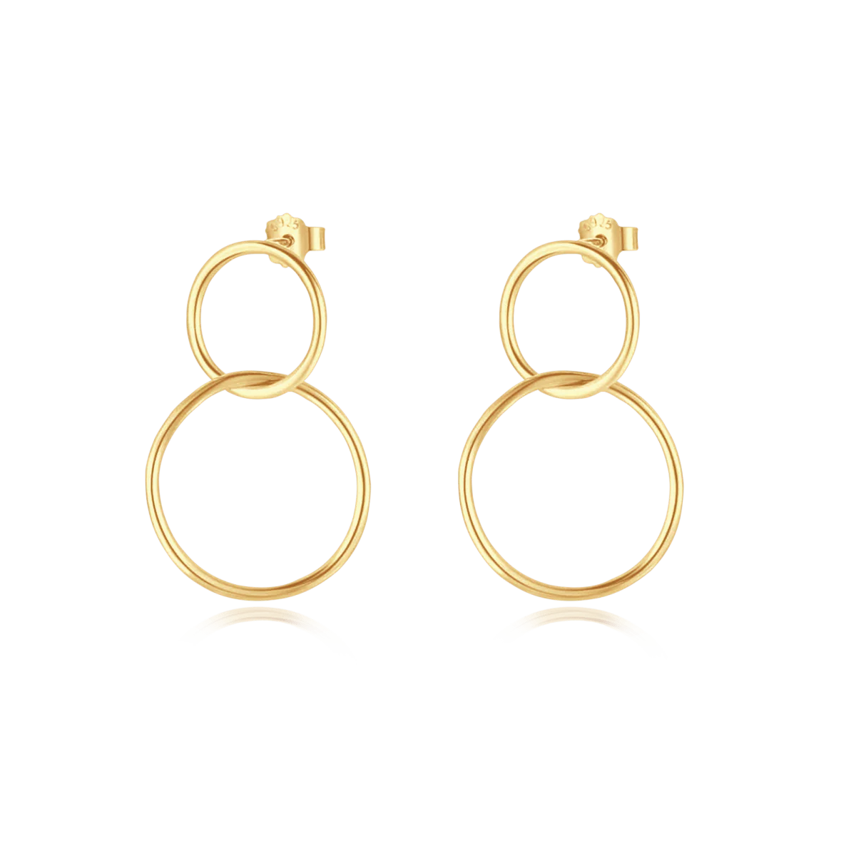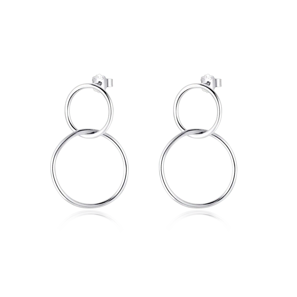 Pendientes de doble aros enlazados entre tamaños desiguales, en plata de primera ley (S925).