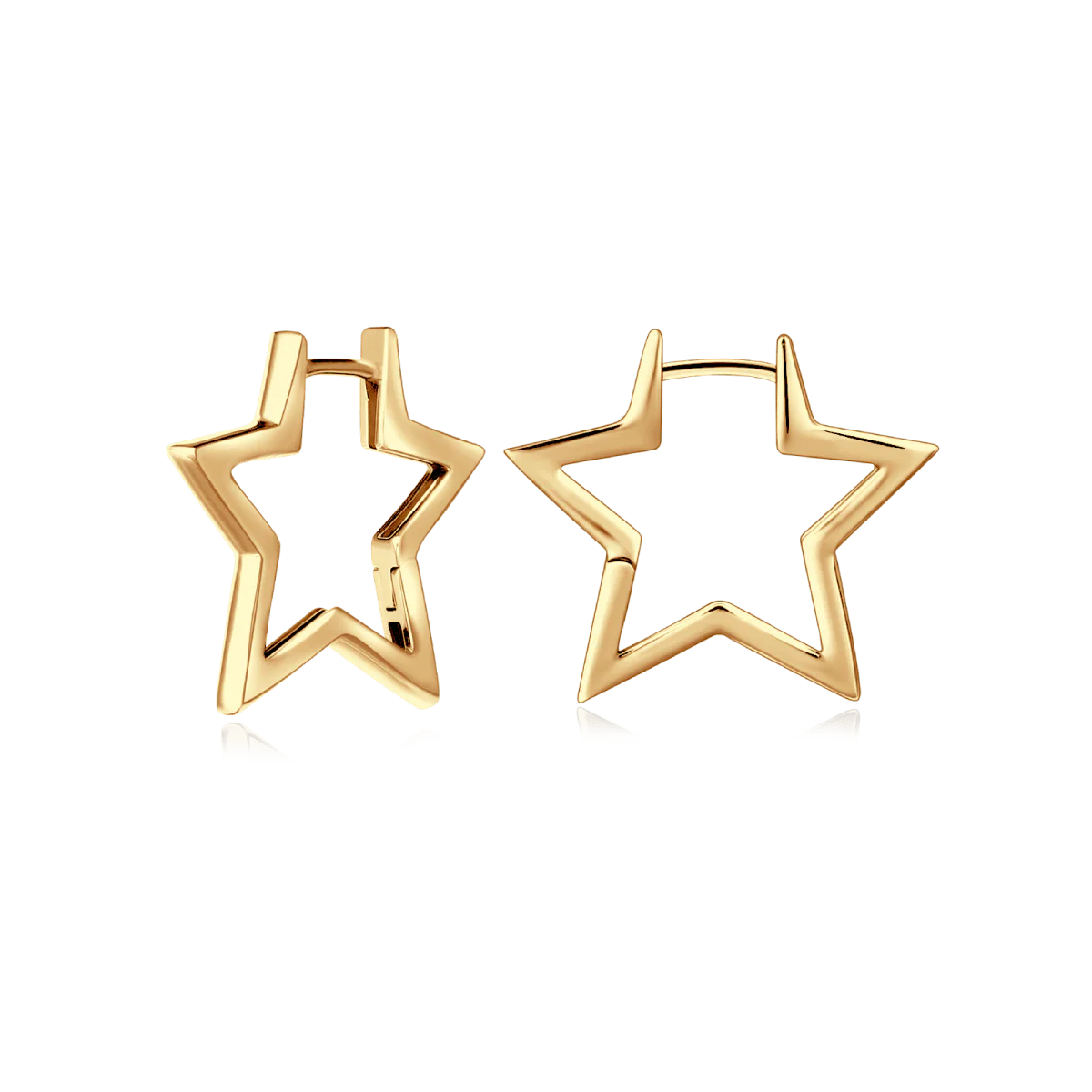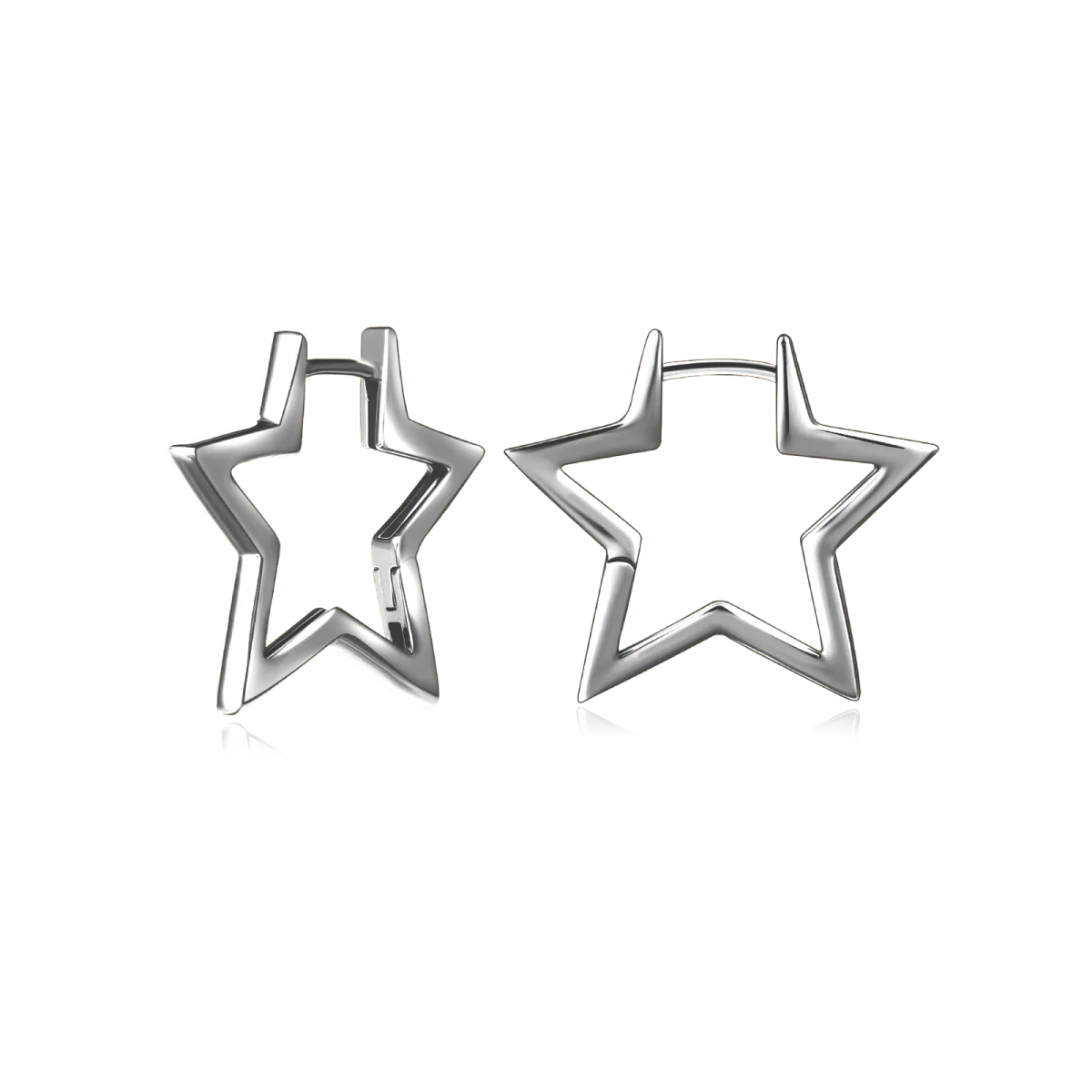 Pendientes delineados con silueta de estrella de 4 puntas, su diseño es hueco y amplio con cierre tipo gancho horizontal, en plata de primera ley (S925).