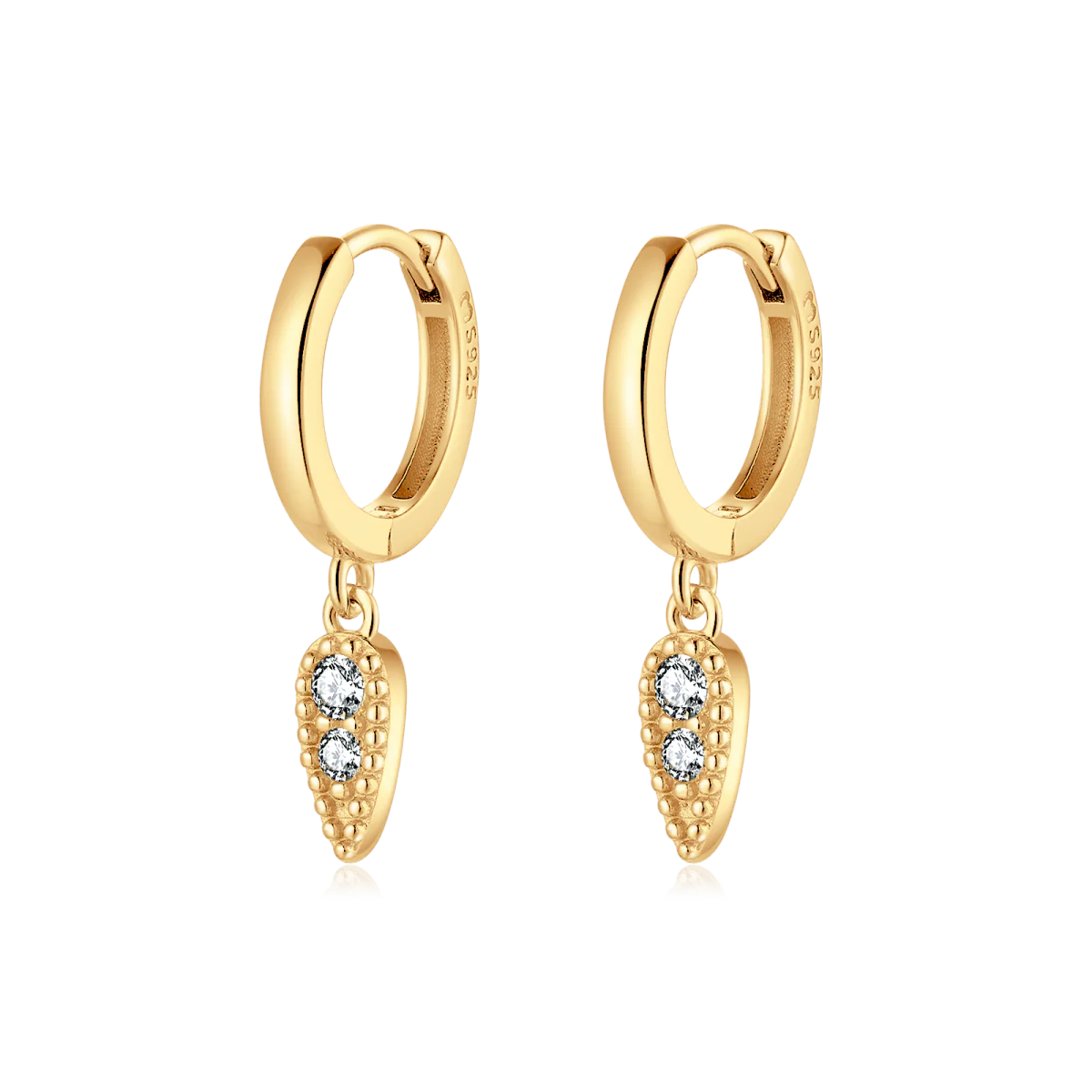 Pendientes de aros con elegante gota colgante y circonitas brillantes, en plata de primera ley (S925).