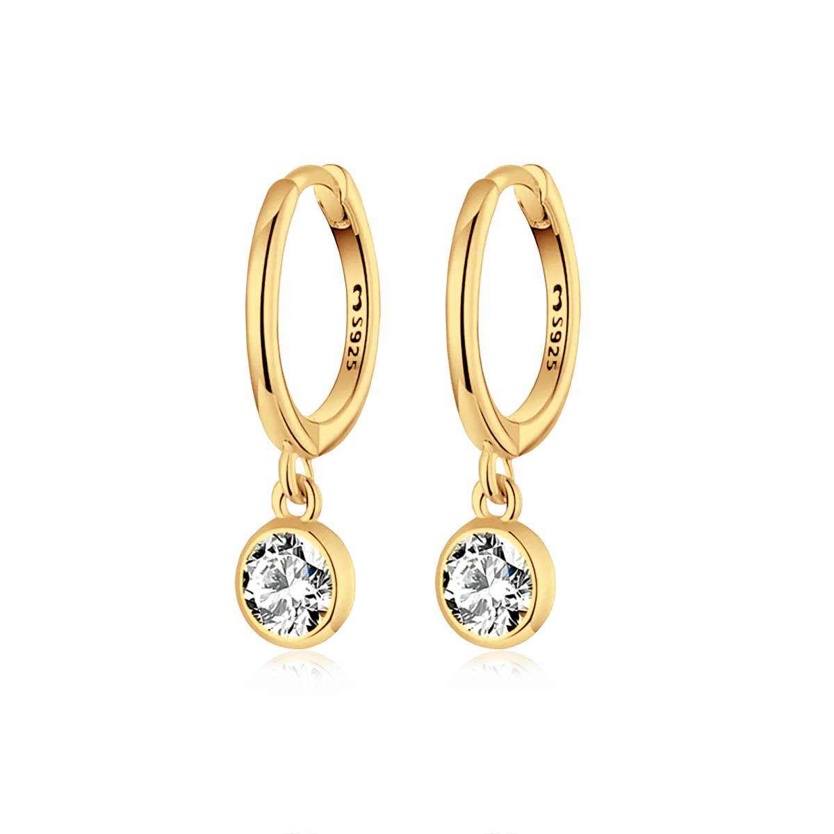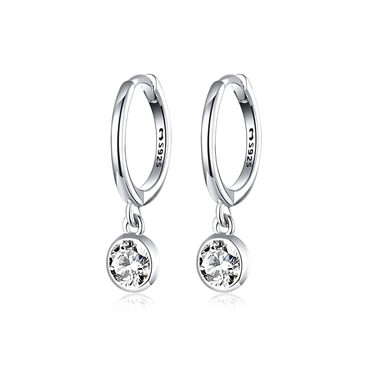Pendientes en forma de aro liso y un brillante circular colgante, en plata de primera ley (S925).