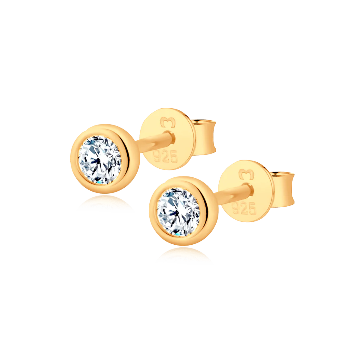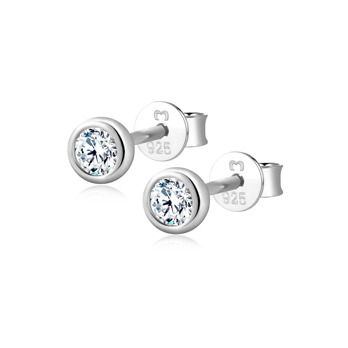 Pendientes de diseño compacto, decorados con una circonita blanca o negra en forma circular, para escoger tu favorito, en plata de primera ley (S925).