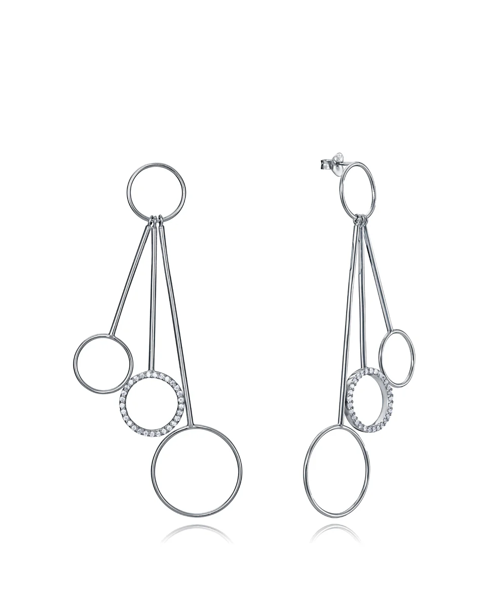 Pendientes largos Viceroy Trend en plata de ley con baño de rodio, con tres barras rígidas enganchadas a un aro superior y anillas, la central con circonitas blancas. Largo 7cm.