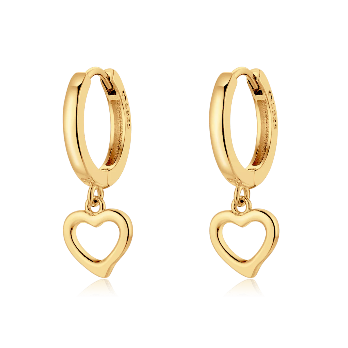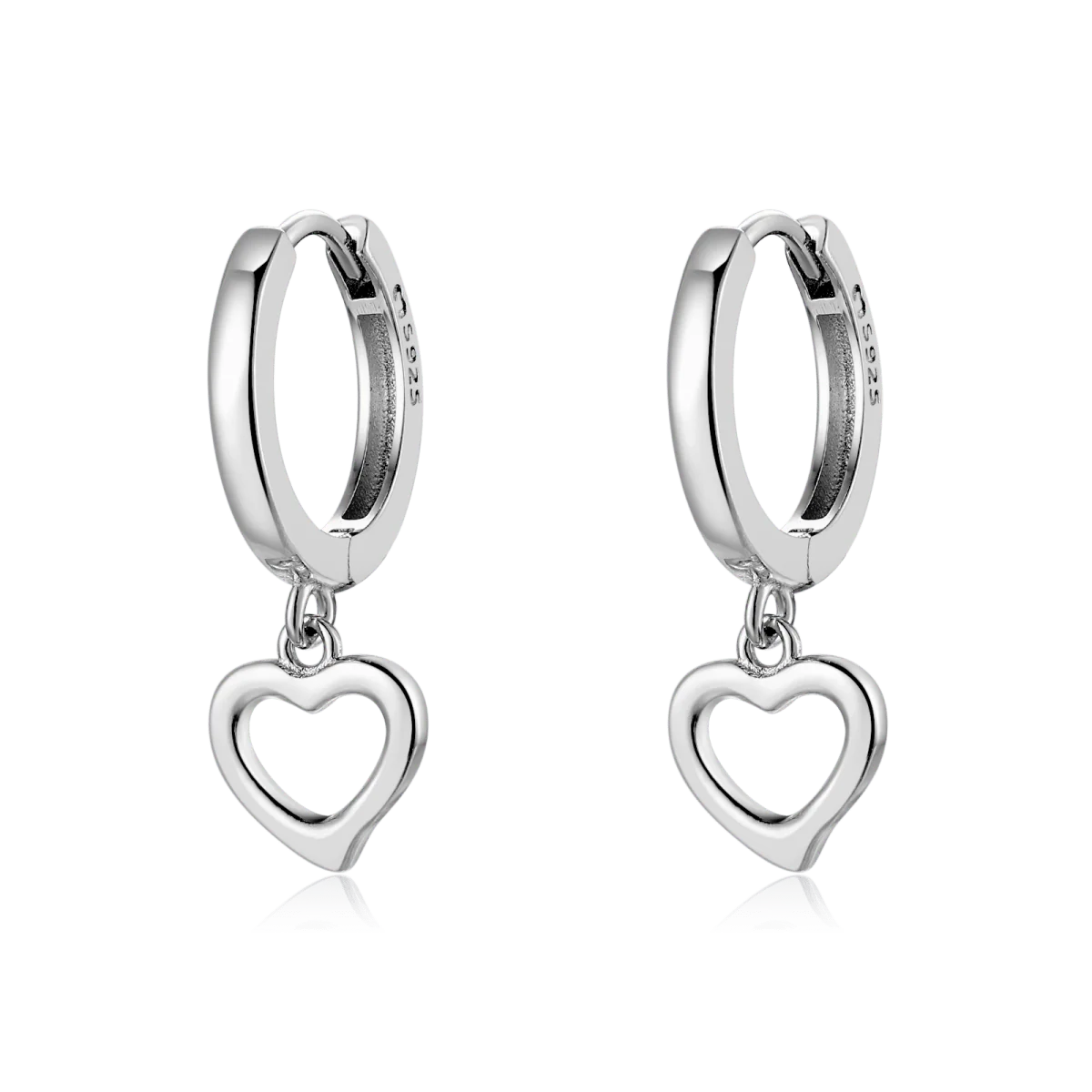 Pendientes de aros con adorables corazoncitos huecos, en plata de primera ley (S925).