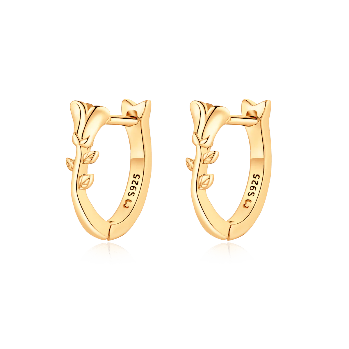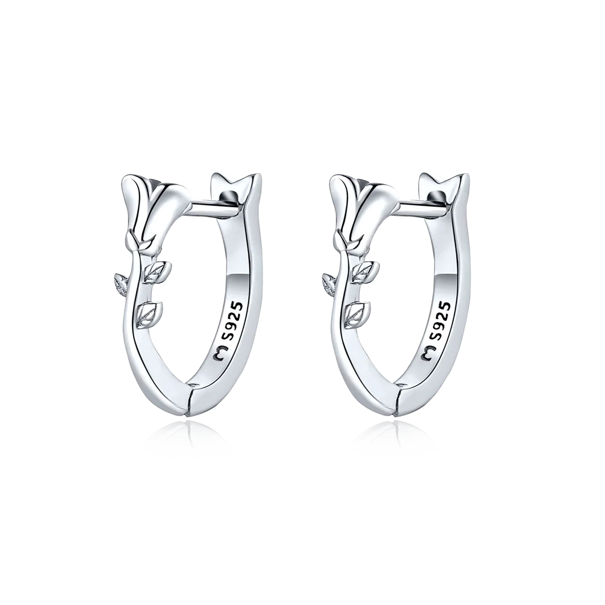 Pendientes con hermosa rosa, acompañada de delicadas hojas, en plata de primera ley (S925).