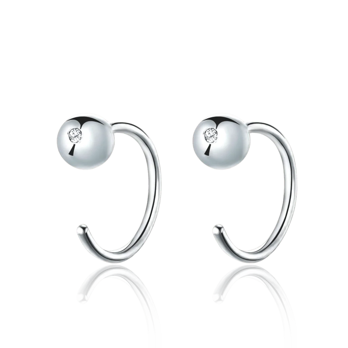 Pendientes con forma de aro abierto y una bolita en la parte superior, en plata de primera ley (S925).