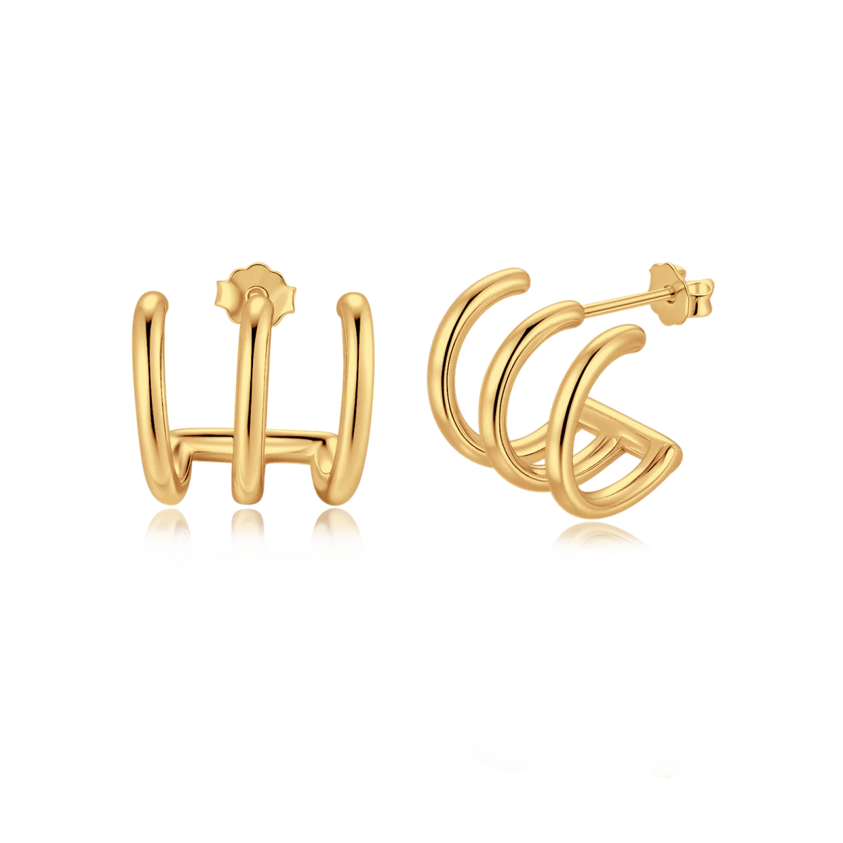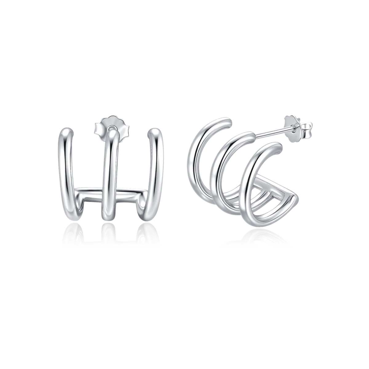 Pendientes en trío de semiarcos en forma de tridente con una ligera separación, en un diseño único e innovador, para lucir auténtica, en plata de primera ley (S925).