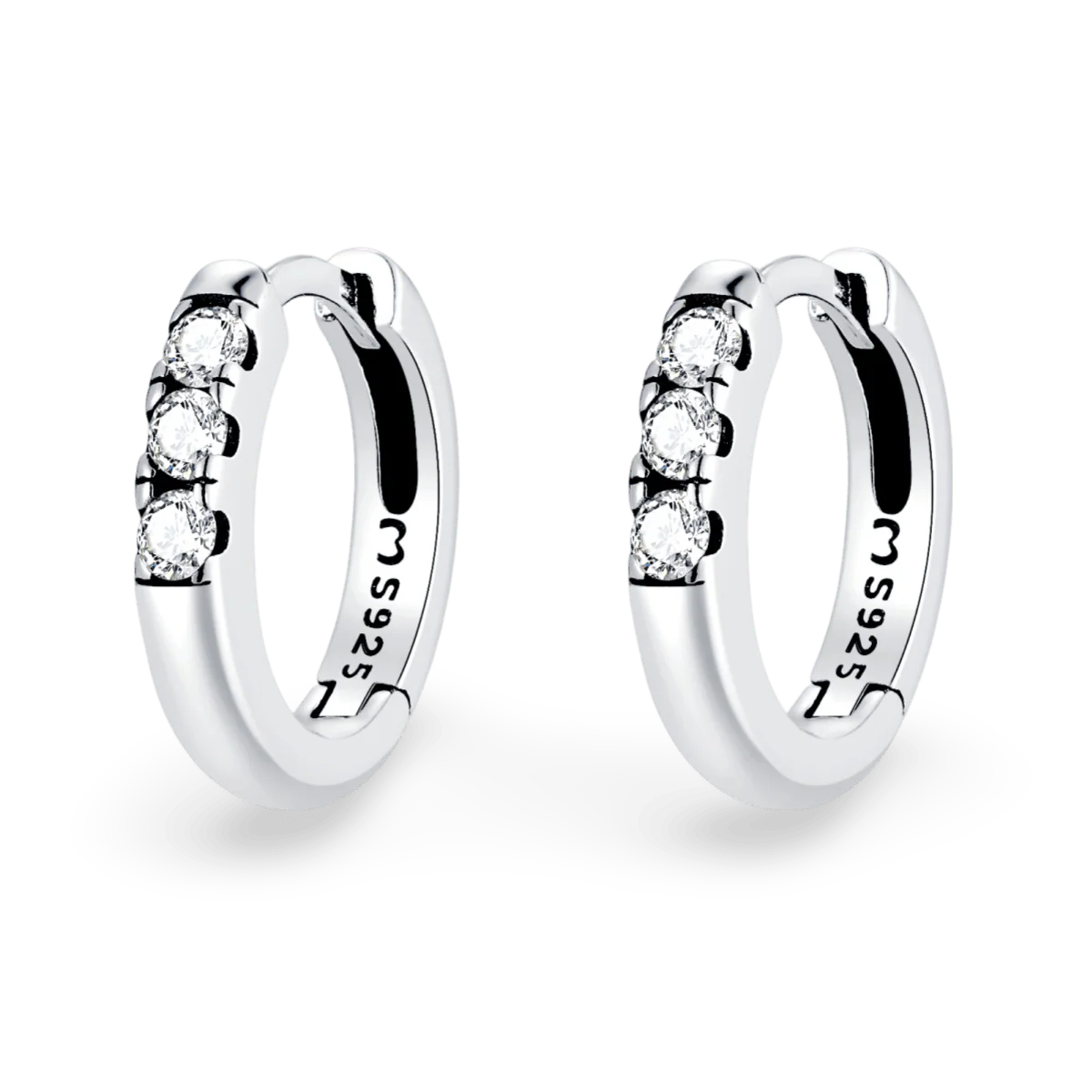 Preciosos pendientes decorados con tres circonitas brillantes en la parte superior, en plata de primera ley (S925).