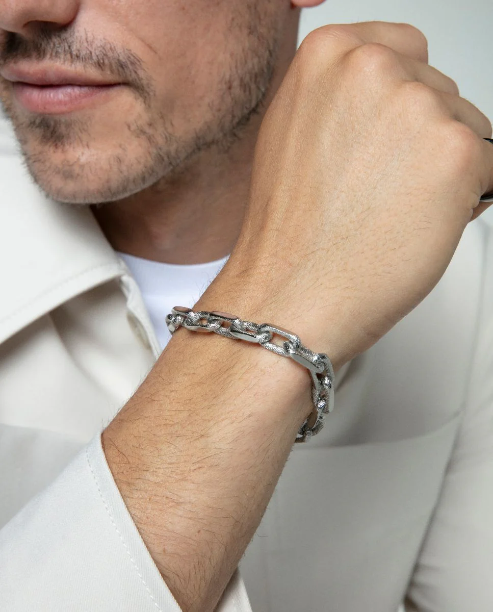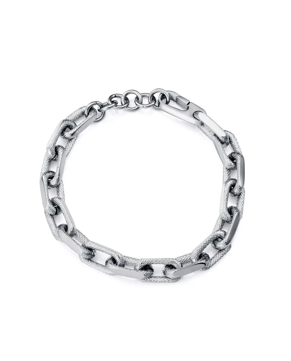 Esta pulsera de hombre de acero presenta un diseño clásico de cadena, combinando robustez y estilo. Su estructura en acero asegura durabilidad, mientras que su acabado pulido aporta un toque elegante y masculino. Ideal tanto para el uso diario como para ocasiones especiales, esta pulsera es un accesorio versátil que complementa cualquier look. Perfecta para el hombre que busca un complemento sencillo pero sofisticado, que añade un toque moderno y distintivo a su estilo. Su longitud ajustable asegura un ajuste cómodo y seguro. Largo 19,5 +3 cm.