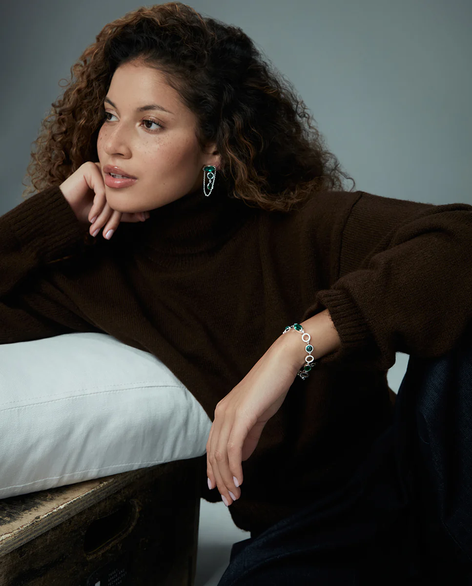 Una pulsera que destaca por su elegancia y frescura, perfecta para añadir un toque de color a cualquier look. Fabricada en acero chapado en plata 999, se adorna con cristales azules y verdes que aportan destellos vibrantes y luminosos. Su diseño delicado y sofisticado la convierte en una pieza versátil, ideal tanto para el día a día como para ocasiones especiales. Con un largo de 17,5 cm más 2 cm de extensión, se ajusta cómodamente a la muñeca, ofreciendo estilo y comodidad. Una joya única que refleja frescura, distinción y la belleza de los cristales en un diseño contemporáneo.