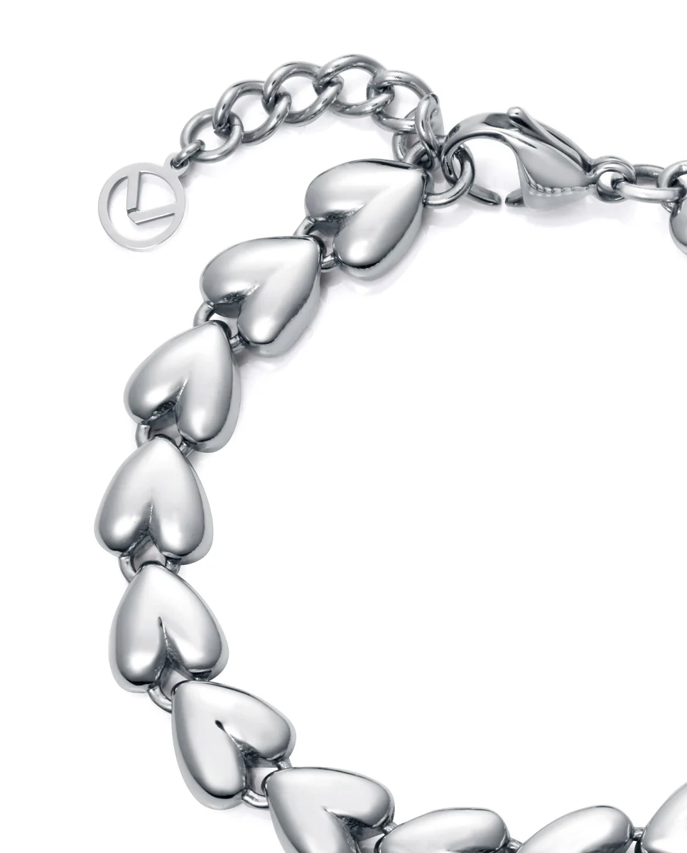 Esta pulsera de mujer en acero con eslabones en forma de corazones es una joya que combina elegancia y romanticismo en cada detalle. Su diseño delicado y versátil la hace perfecta para adaptarse cómodamente a tu muñeca. Los eslabones con forma de corazones añaden un toque femenino e irresistible. Una pieza atemporal que destaca por su diseño cuidado y su capacidad de transmitir estilo y dulzura. Perfecta para regalar o para darte un capricho lleno de encanto. Largo 17,5 + 2 cm