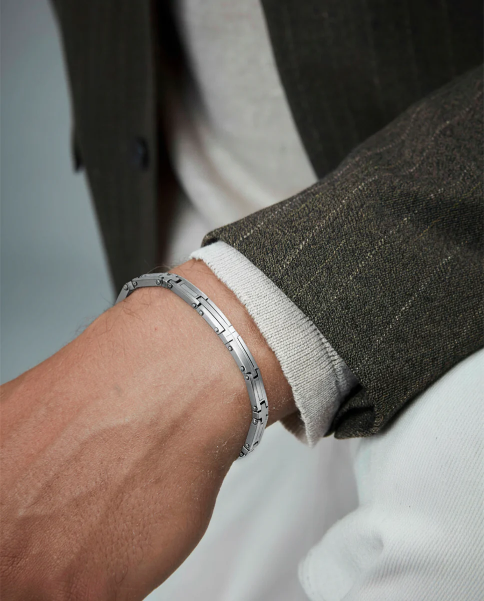 Una pulsera que fusiona simbolismo y estilo moderno con un diseño único. Fabricada en acero, esta pieza presenta eslabones en forma de cruz, un detalle que le otorga un toque de carácter y profundidad. El diseño audaz y contemporáneo se adapta fácilmente a cualquier look, desde el más casual hasta el más formal. Con un largo máximo de 21,5 cm, se ajusta cómodamente a la muñeca, convirtiéndola en un accesorio perfecto para hombres que buscan un toque de distinción y simbolismo en su estilo. Ideal para quienes aprecian la moda con un mensaje personal.
