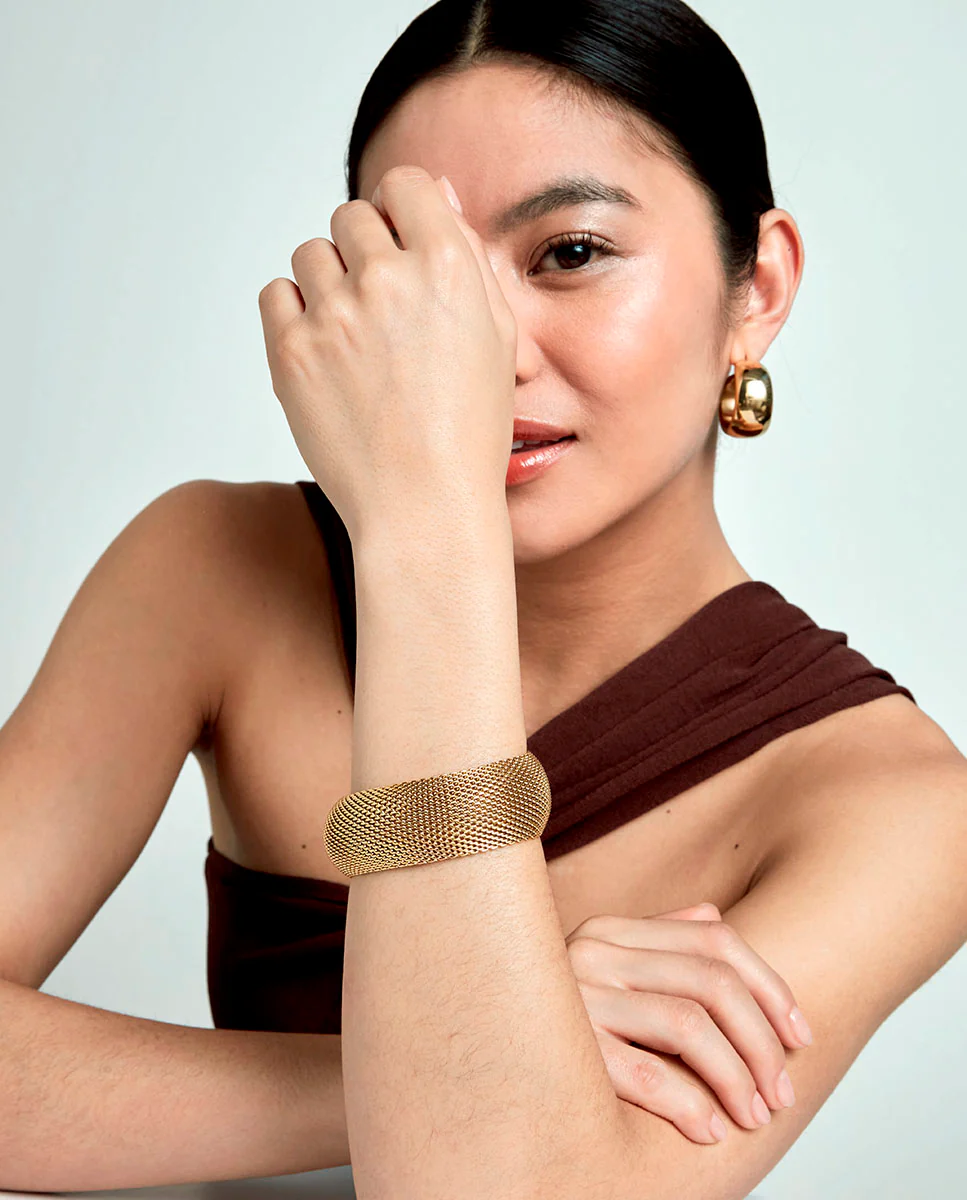 Elegante y contemporáneo, esta pulsera de mujer en acero IP dorado presenta un estilo tipo esterilla que aporta un toque sofisticado y moderno. Su longitud de 21 cm más 3 cm de extensión asegura un ajuste cómodo y personalizado, adaptándose a tu muñeca con facilidad. Perfecta para quienes buscan un accesorio versátil que complemente tanto looks casuales como formales, esta pulsera es la elección ideal para añadir un toque de distinción y estilo a tu día a día.