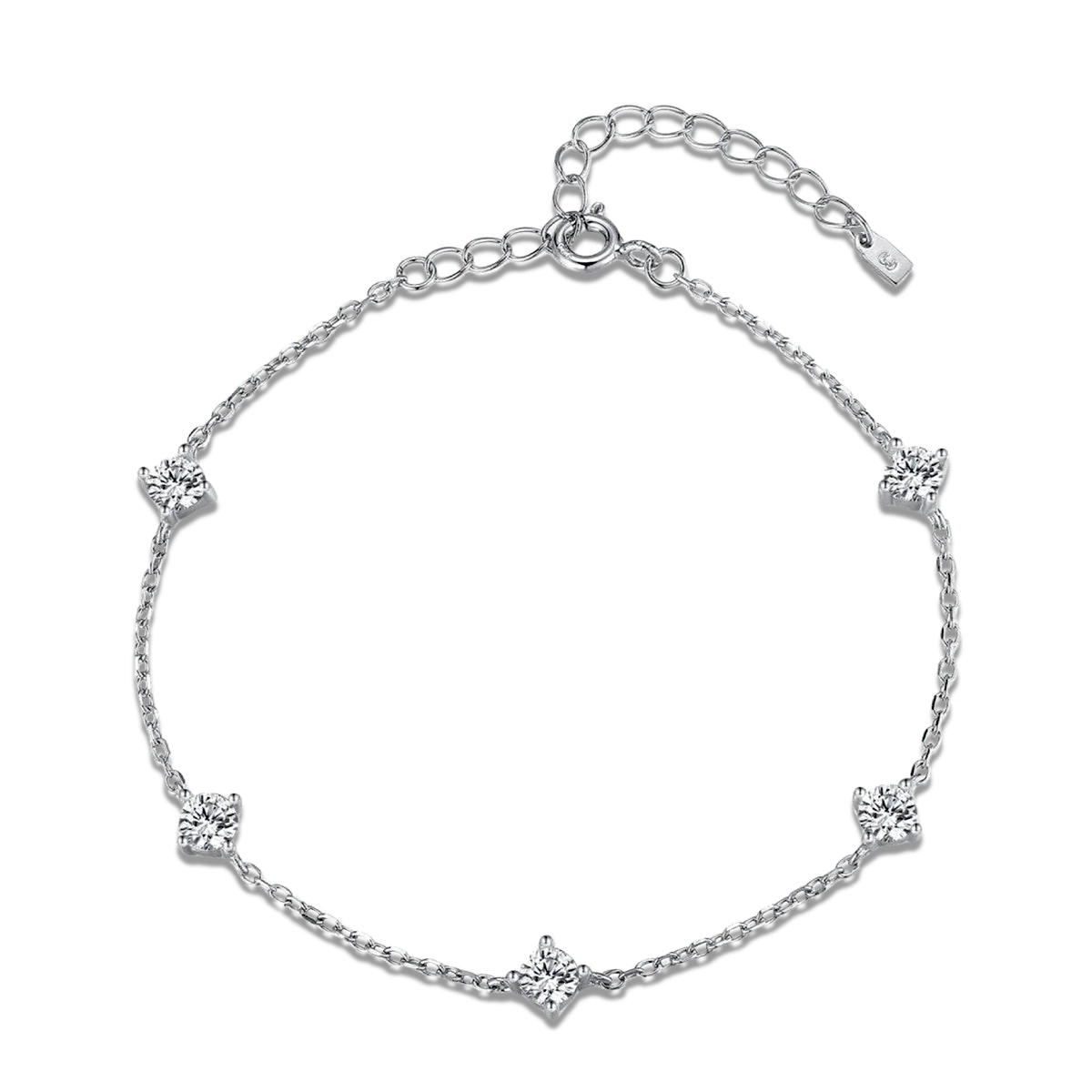 Pulsera con cinco espléndidas circonitas en figuras circulares, en plata de primera ley (S925).