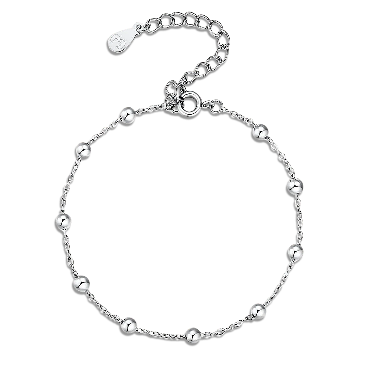 Pulsera ajustable con preciosas bolitas que decoran la cadena, en acero inoxidable de la mejor calidad (316L).