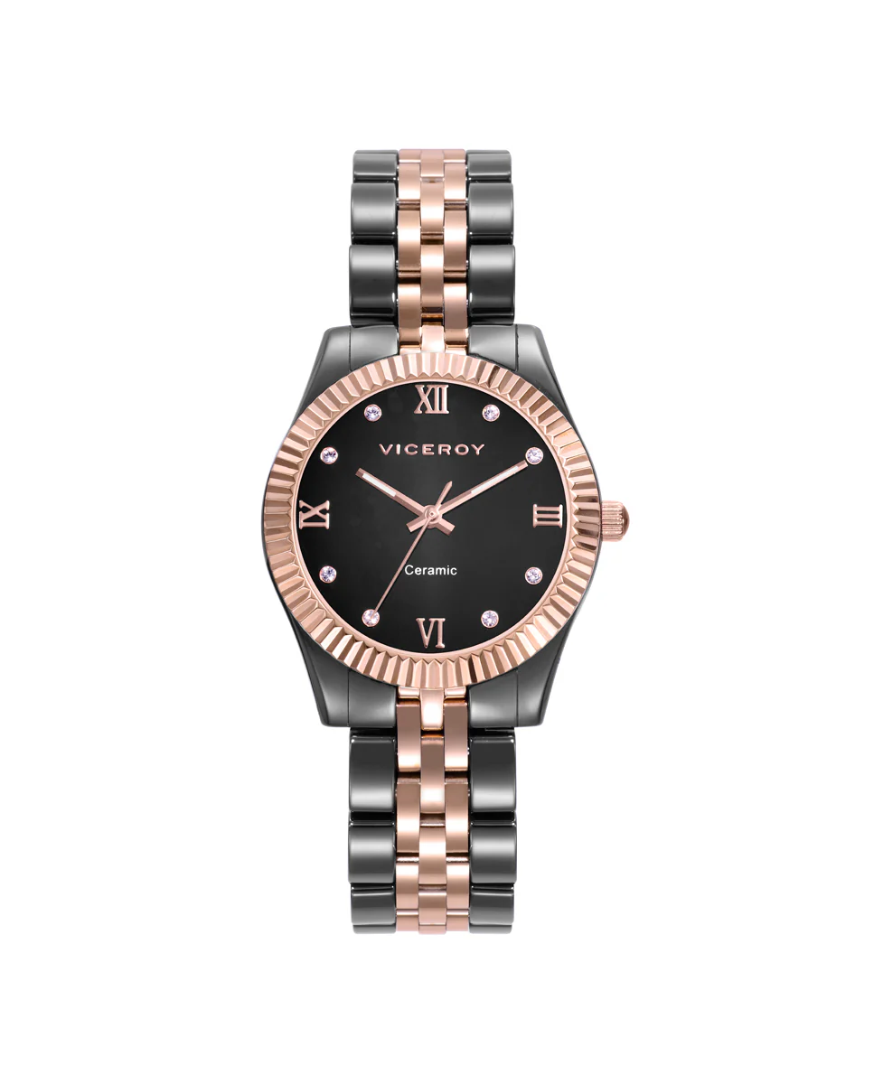 Reloj Acero Ip Rosa Y Cerámica Brazalete Sra Va