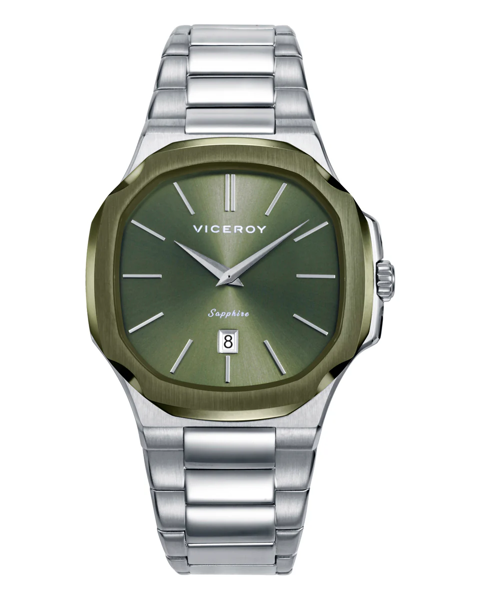 Reloj Acero Ip Verde Zafiro Brazalete Sr Va