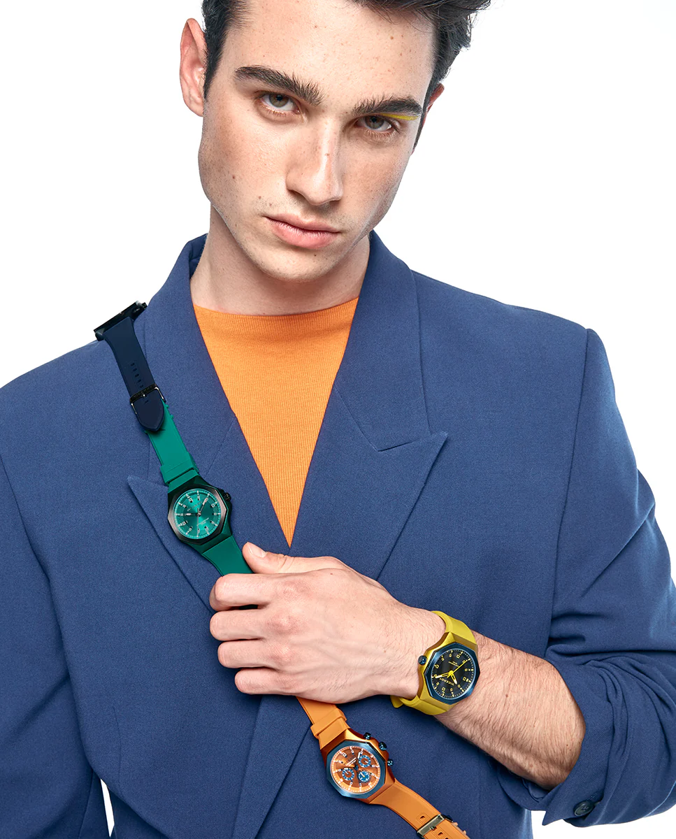 Sé el primero en valorar “Reloj Aluminio Amarillo Y Acero Ip Azul Correa Sr”
