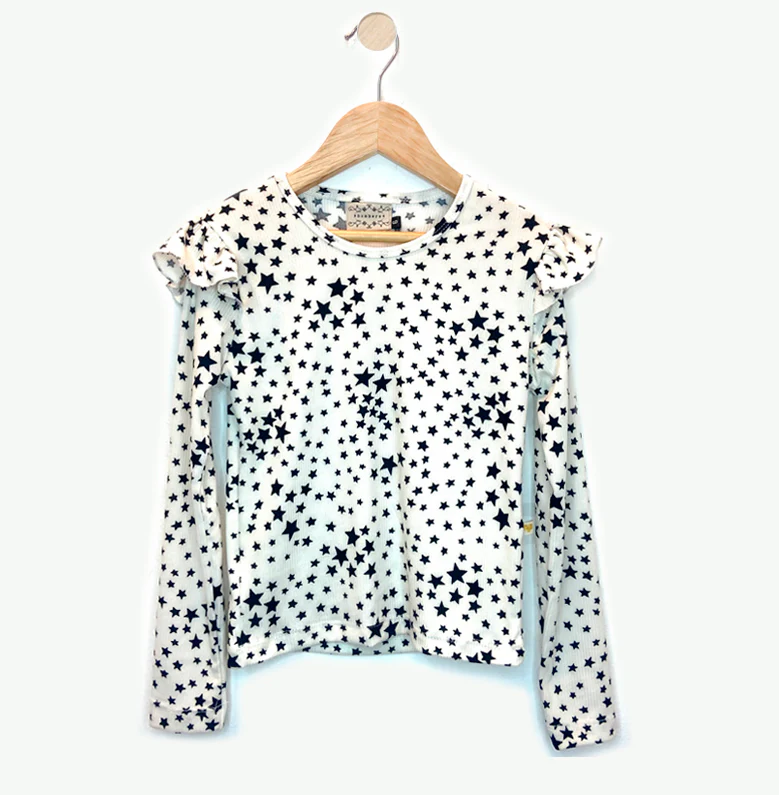 - remera estampada de mórale y con volados