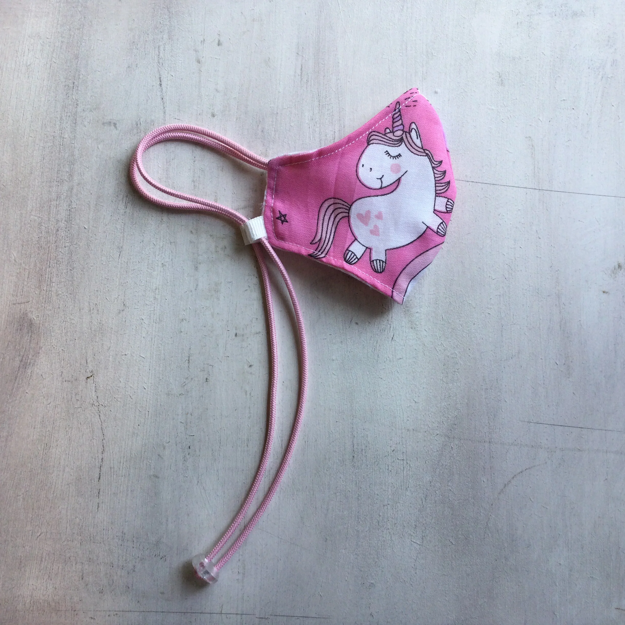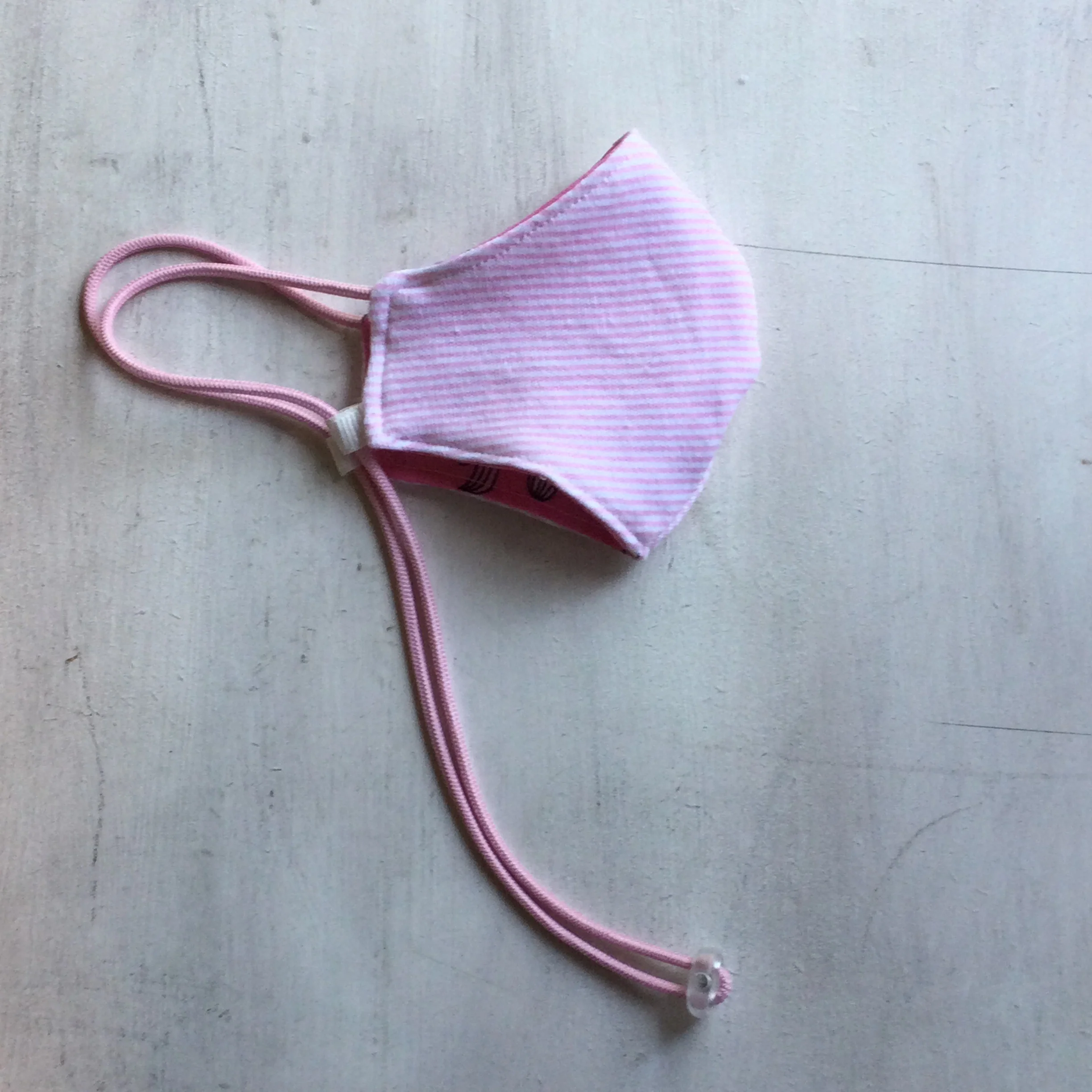 Tapaboca reversible tricapa de algod贸n con tira para colgar y regulador .