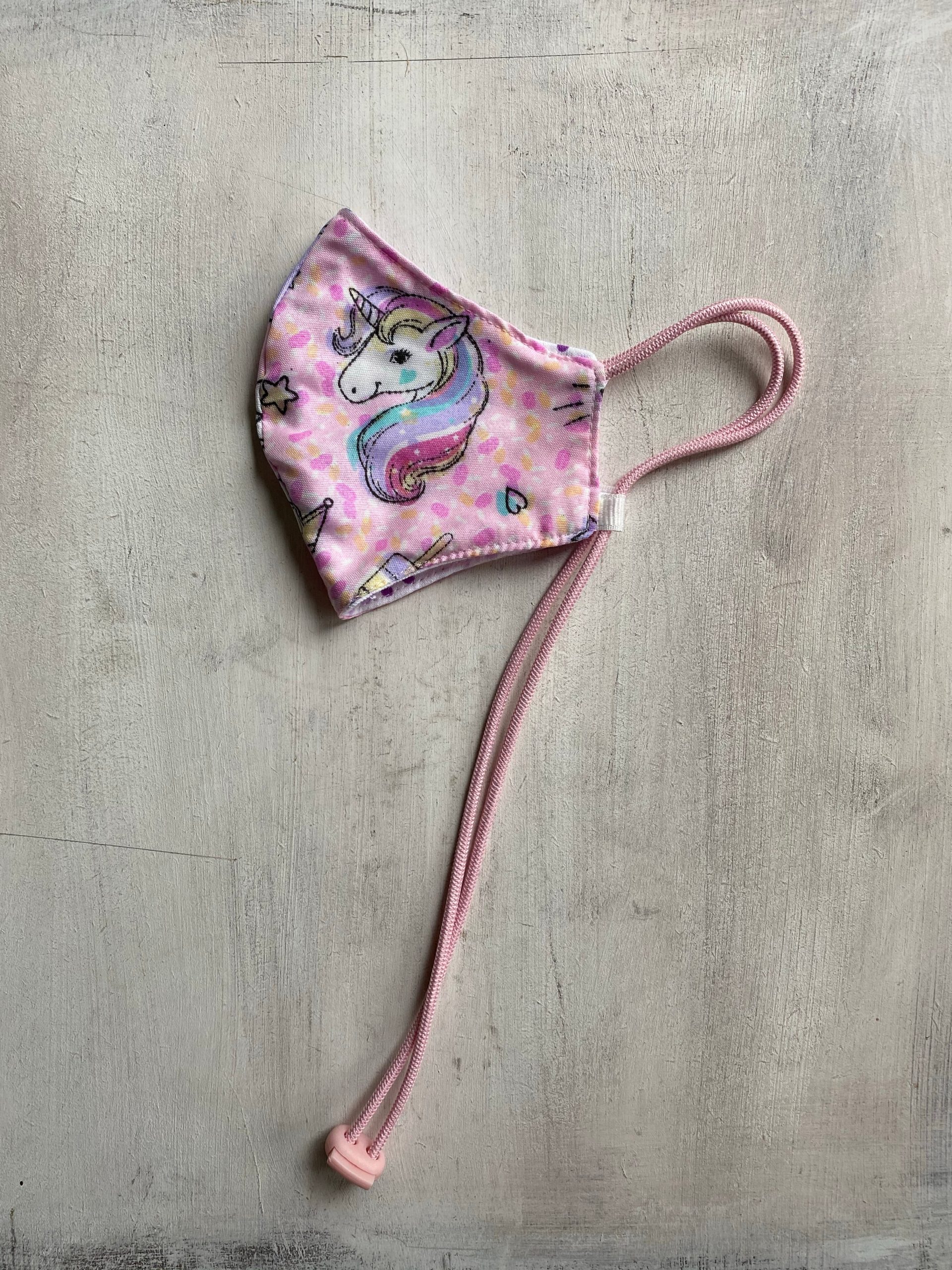 Tapaboca reversible tricapa de algod贸n con tira para colgar y regulador .