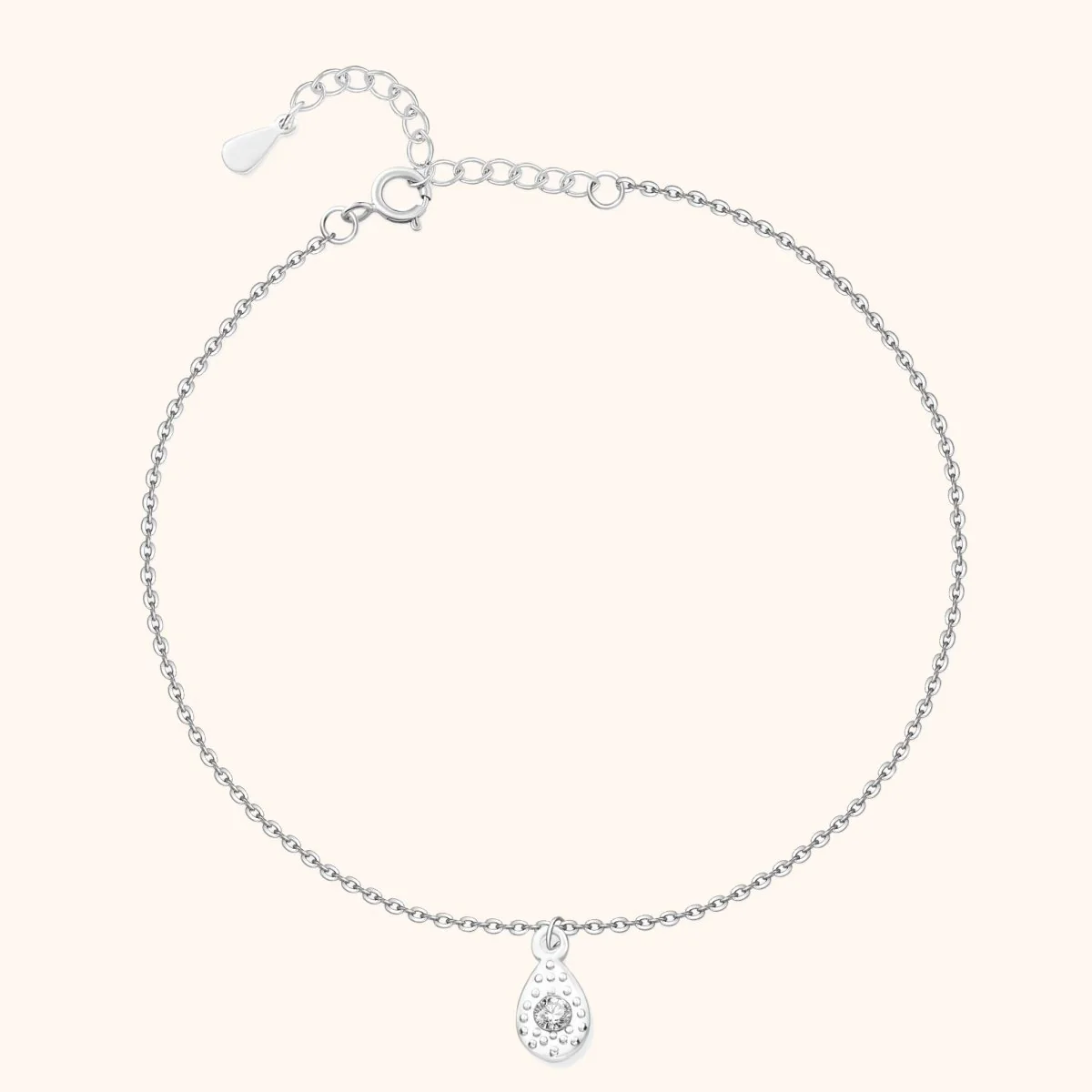 Tobillera con una medalla decorada con una circonita en su centro, en acero inoxidable de la mejor calidad (316L).